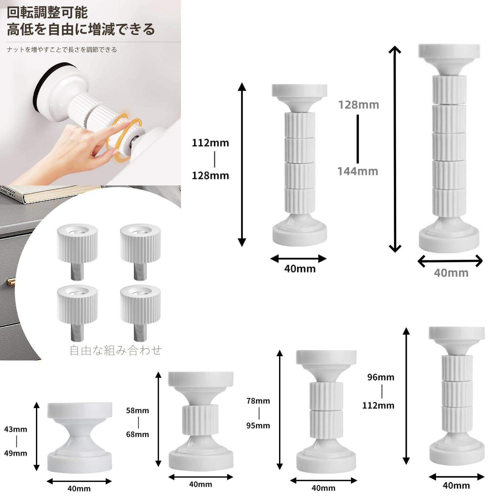 【突っ張り棒·サイズ·調整可】地震 転倒防止器カラー:ホワイト、ブラック。適用高さ4.3~14.4cm。隙間の幅に応じてナット数を変えてもしくはナットを回って設置することができます。ナットは1個につき長さ約2.8 cmです、高さを自由に調整。