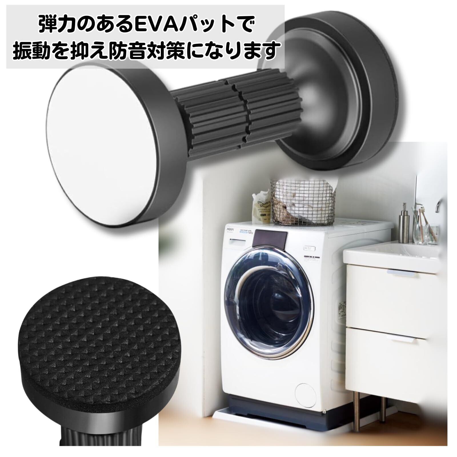 【サイズ、仕様】ホワイト2個セット。両面テープ付きで簡単取付。サイズ:取付高さ4.2~11cm。直径4cm。必要に応じてナットを出し入れすることで、高さを自由に調整できます。圧着固定の摩擦を軽減するEVA保護パッド付き。本体は発泡ポリエチレン素材使用で家具への傷を防ぎます。