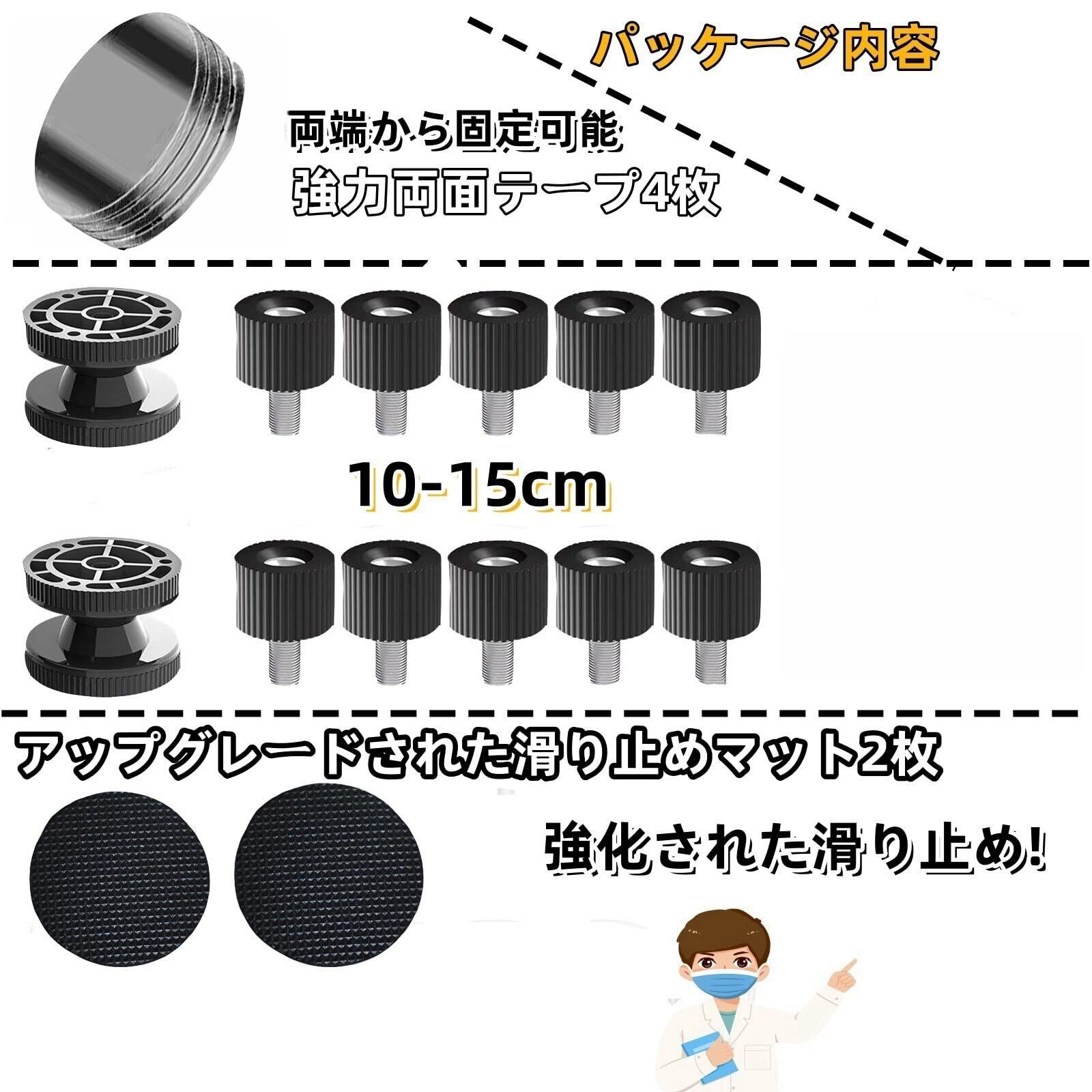【柔軟な調整】3つのナットが付いていると、調整可能な固定棒の長さは10〜11.5cmです。4つのナットが付いていると、調整可能な長さは11.5〜13.5cmです。5つのナットが付いていると、調整可能な長さは13.5〜15cmです。【付属品】4つの強力な直径6cm両面テープ、2つの防滑パッドが同梱されています。