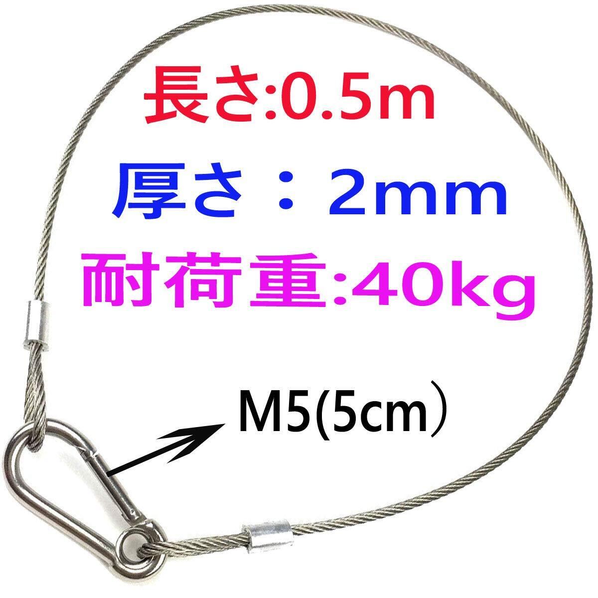 リッセイ セキュリティワイヤー DJライト 固定 ケーブル 落下防止ワイヤー 舞台照明用 転倒防止 耐荷重40kg (10本セット, 径2mm,長50cm) シルバー