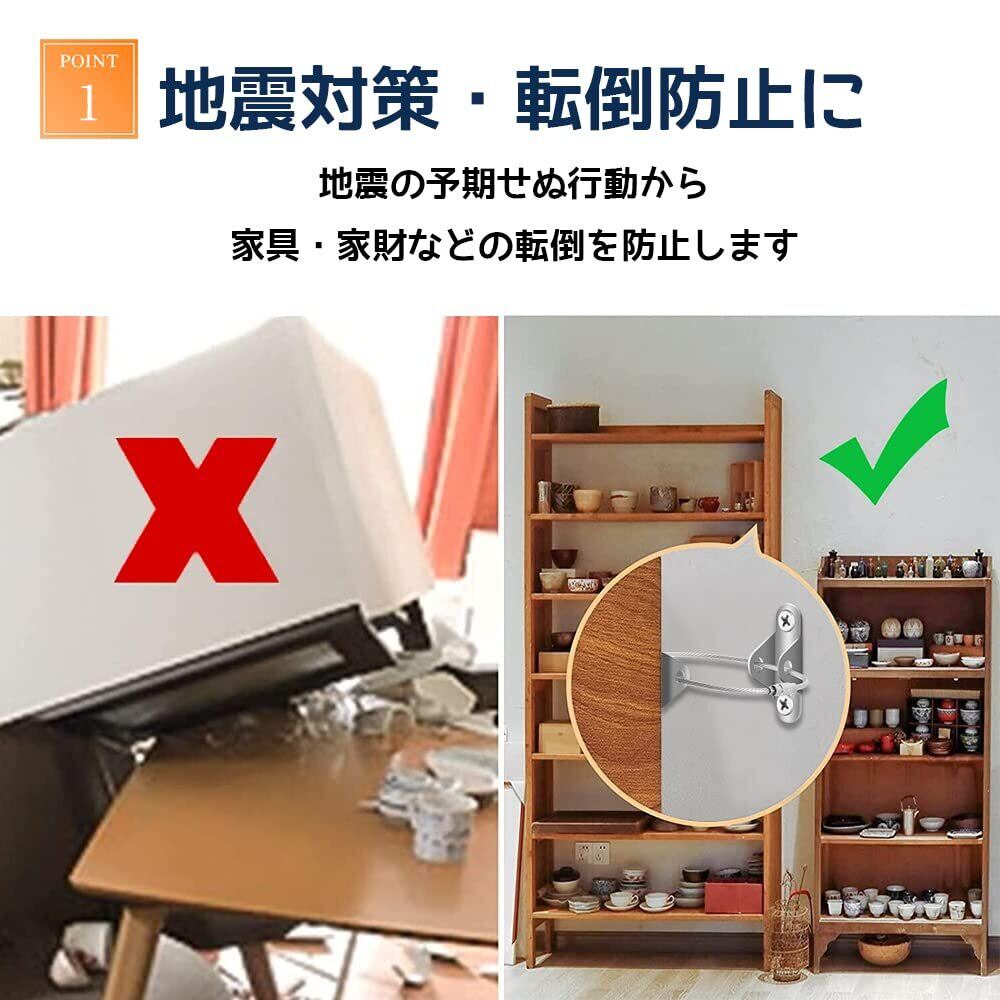 この「転倒防止金具」は、**地震などの災害時に家具が転倒するのを防ぎ、安心な住環境を提供します!** 大切な家具と家族を守るための強力なサポートアイテムです。