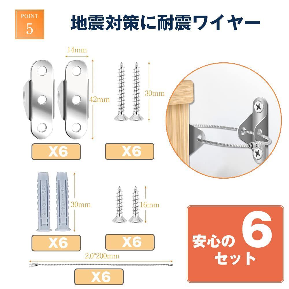【品質セット内容】転倒防止金具(2個)*6、M4ネジA(2個:サイズ大)*6、M4ネジB(2個:サイズ小)*6、M6アンか*6個、鋼線ケーブル*6個。合格の商品と最高のカスタマーサービスを提供します。ご購入後、疑問がある場合、いつでもお気軽にお問合せください。