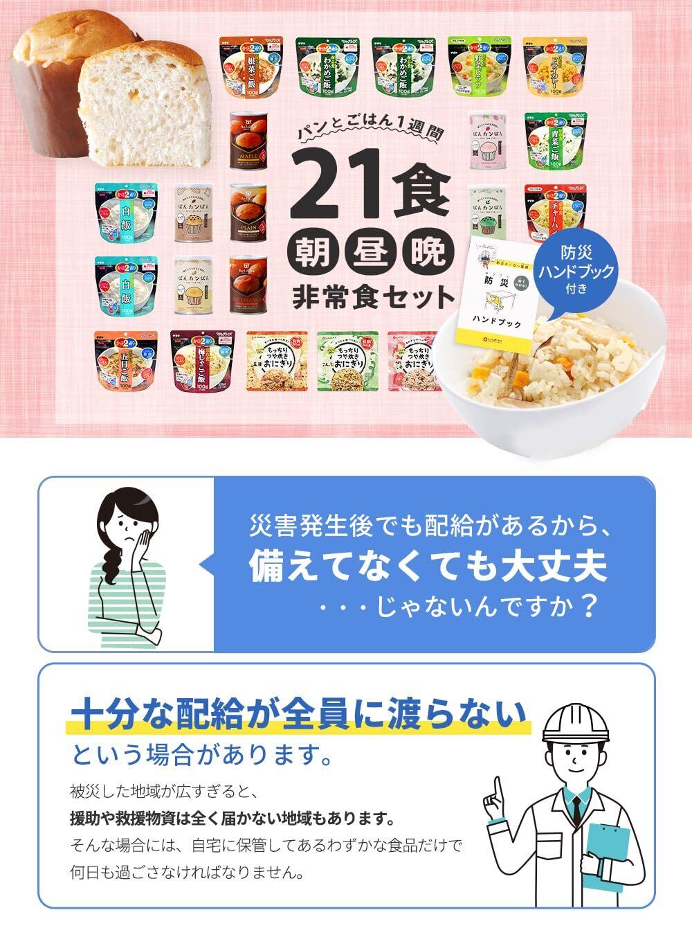 非常食セット パン と ごはん 1週間 21食 [朝・昼・晩]の 保存食セット 7日分 保存食 非常食 災害用 アルファ米 おにぎり 防災セット 備蓄 防災グッズ