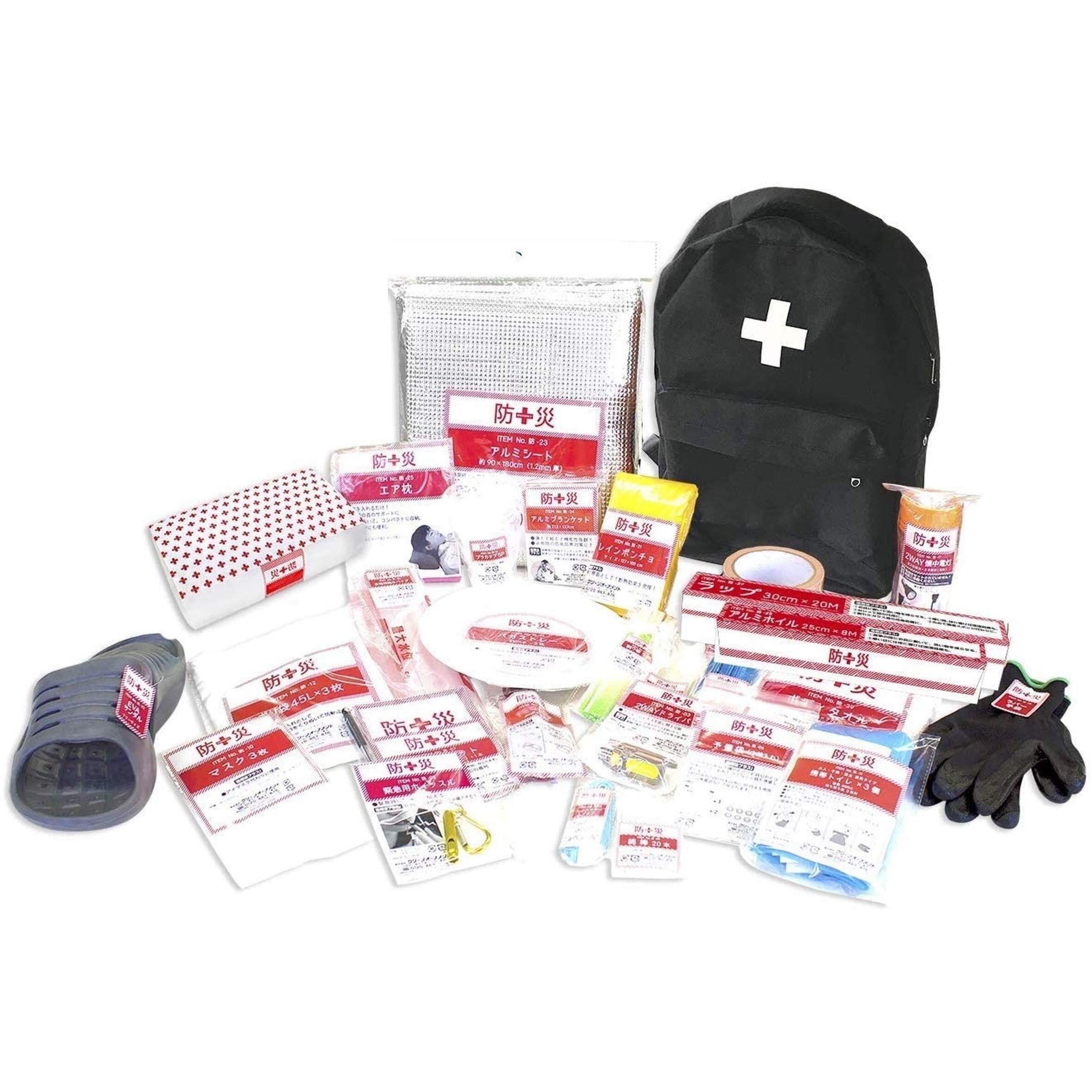 山善(YAMAZEN) 防災リュック 30点 セット 【防災士監修】 一次避難用 給水バッグ 携帯用トイレ 大容量 ブラック YBG-30(BK)
