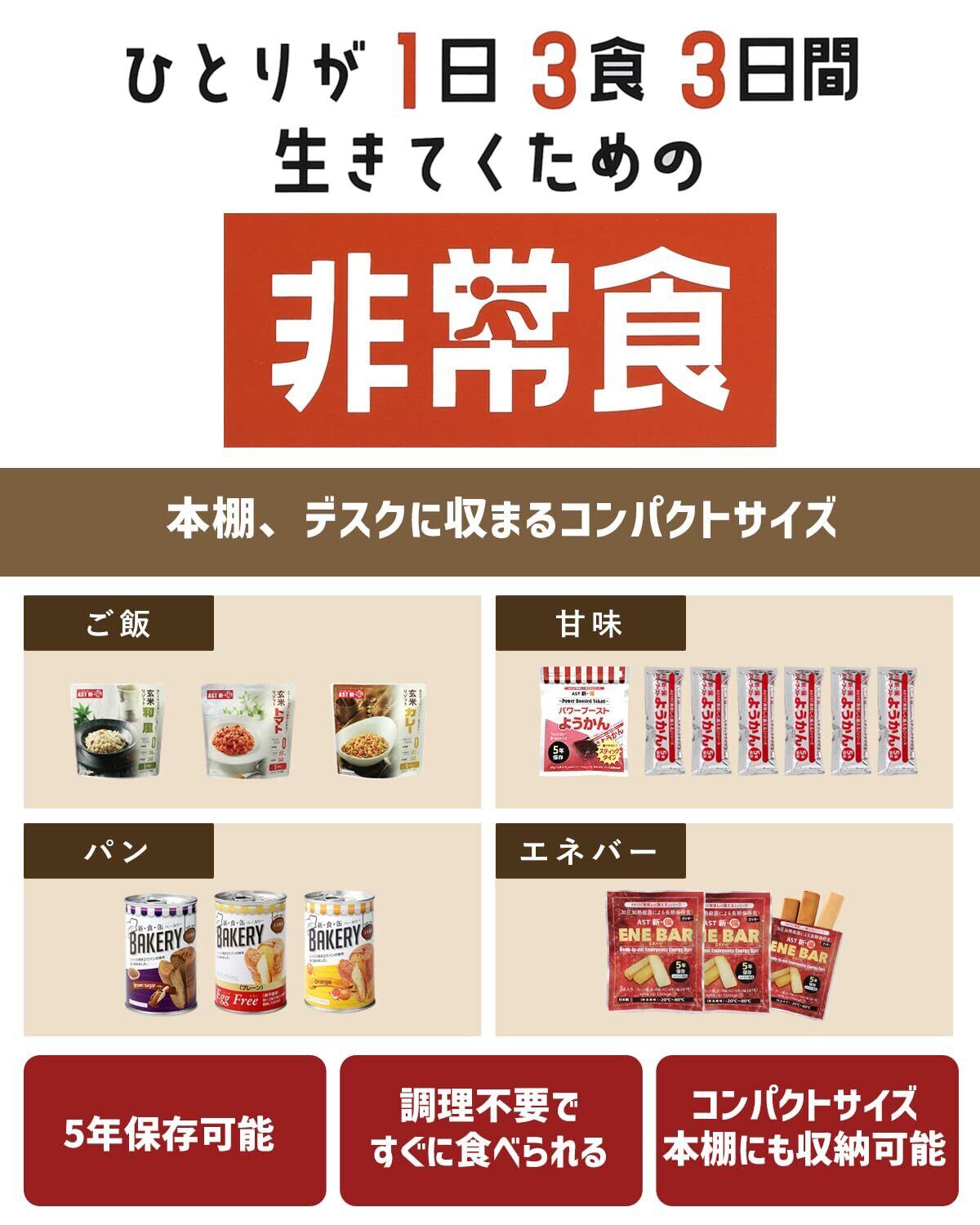 非常食 3日間非常食セット 長期5年保存 調理不要 本棚に収まるコンパクトサイズ スプーン付 防災 保存食 美味しく備える AST アスト 防災防犯ダイレクト