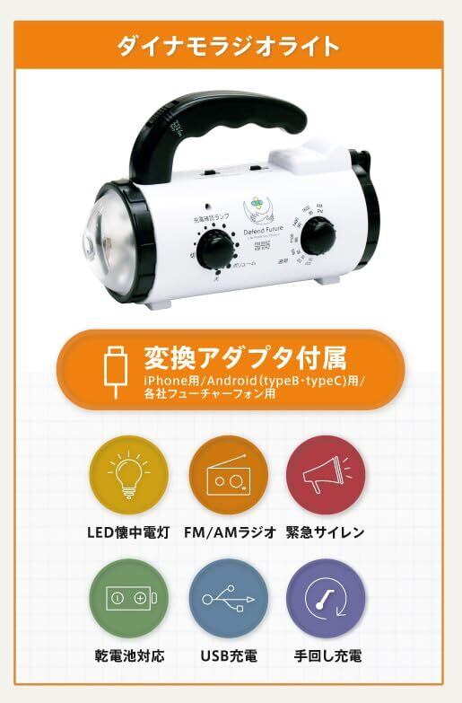 ✳️高性能LEDダイナモラジオライト [FM/AMラジオに対応] ➡️ 付属のLEDダイナモラジオライトは、 1️⃣ 乾電池、 2️⃣ 手回し充電、 3️⃣ USBケーブルからご使用いただけます。iPhoneやmicroUSBの変換アダプタも付属(ケーブルの場合もあります)。もちろん充電だけでなく、緊急時に [ AM / FMラジオ ] を聞く事や緊急LEDライトとしても活躍。デスクライトとしての顔もあり、警報機能付き。災害時のみならず、普段使用でも活用できる商品です。 ※ダイナモラジオの中には蓄電できなかったり、AMラジオに対応していなかったりする製品もありますのでご注意下さい!