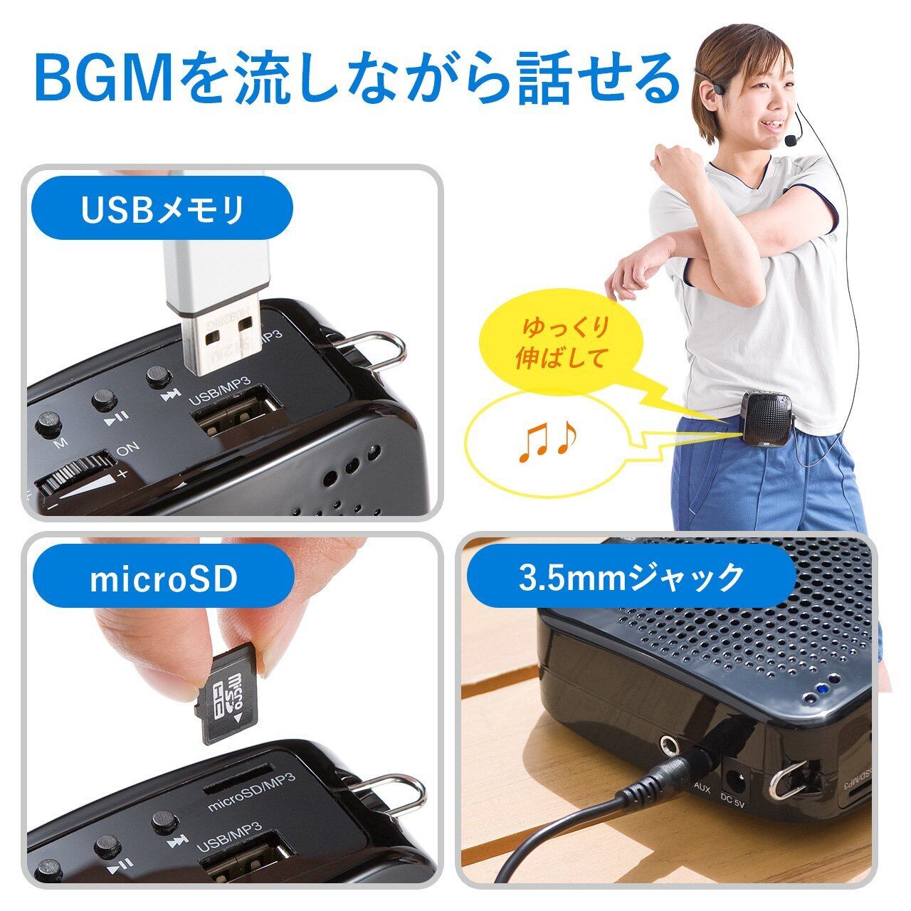 \【◆サンワダイレクト ポータブル拡声器 【音楽同時再生で、BGMを流せる!】 マイク付 USB/microSD 対応 ハンズフリー 最大10W 小型 400-SP065!声と音楽を同時に届けます!】/