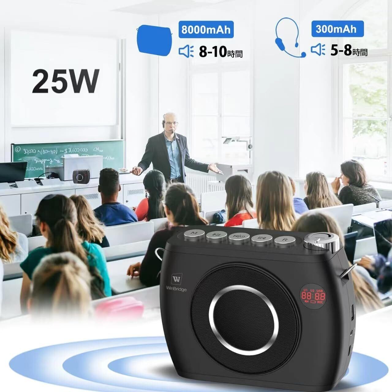 この「W WINBRIDGE 25W 拡声器」は、**優れたポータブル性能を備え、教室や会議、イベントなどで瞬時に声を届けることができます!** 小型ながらも力強い音声拡声が特徴です。