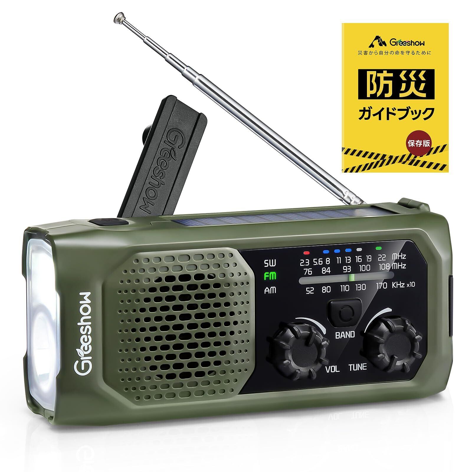 この「Greeshow 防災ラジオ」は、**手回し充電、ソーラー充電、USB充電が可能な多機能設計で、災害時にも安心して使用できます!** FM/AM/SWのラジオ受信機能により、必須の情報をしっかりとキャッチすることができます。