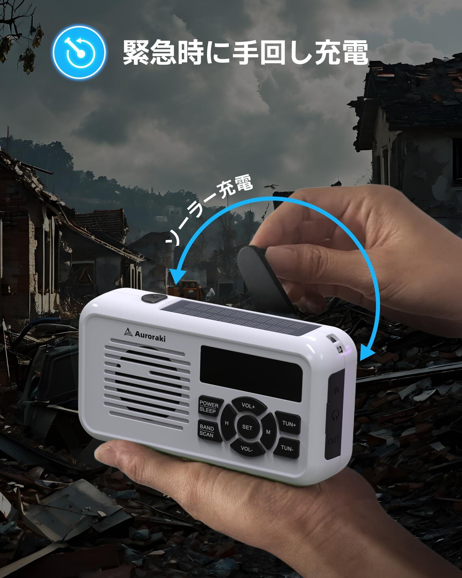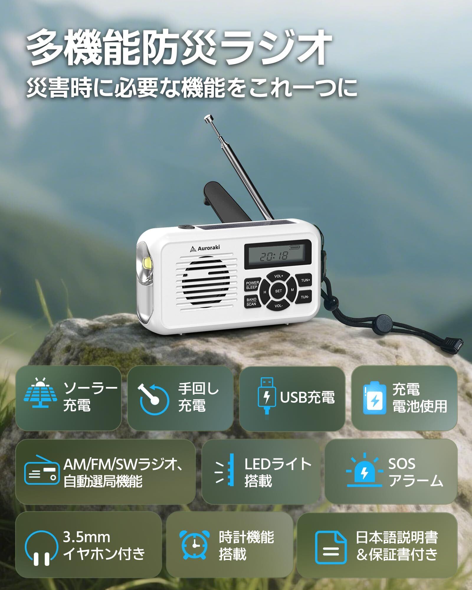 この「防災ラジオ」は、**高い機能性と持ち運びやすさを兼ね備えた、災害準備に欠かせないアイテムです!** 地震や台風などの自然災害に備えるために、ぜひお持ちいただきたい製品です。