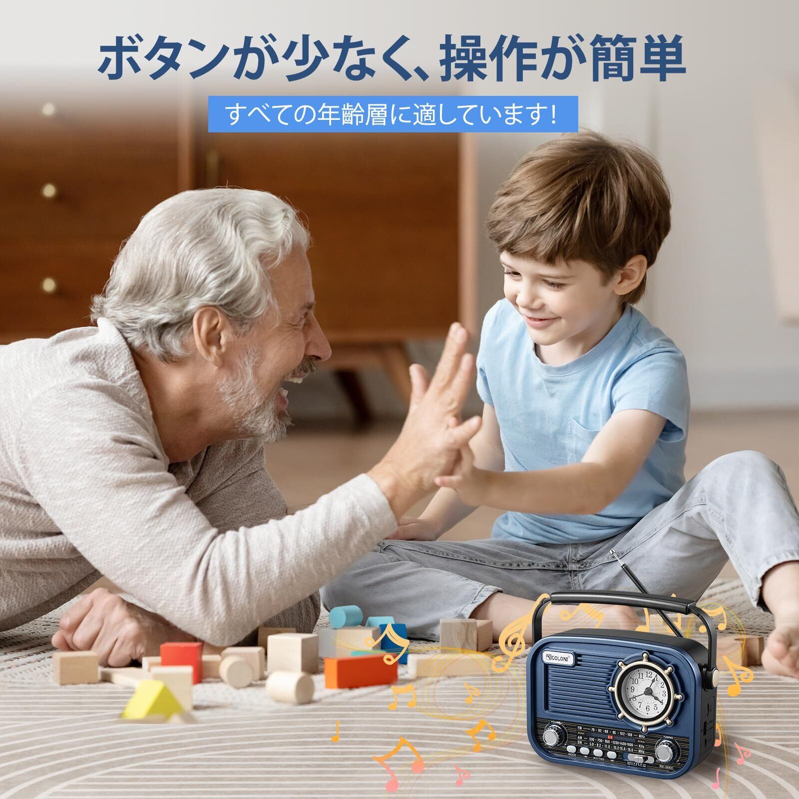 【簡単な操作】シンプルでエレガントな機能設計で、複雑なボタンではなく、微調整ノブを使用しているため、操作が非常に簡単です。さらに、文字がはっきりと印刷されているため、理解しやすいです。レトロで洗練されたデザインは、おじいちゃんやおばあちゃん、両親など、年配の方への最高の贈り物となります。