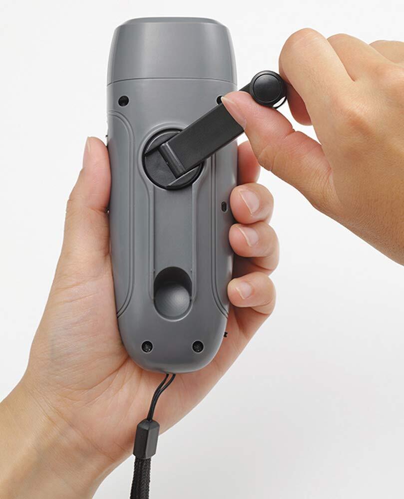 光源:LED3灯、充電方式:手回し・USB充電、電源:充電池、機能:ライト・モバイルバッテリー・FMラジオ・サイレン、付属品:USBケーブル