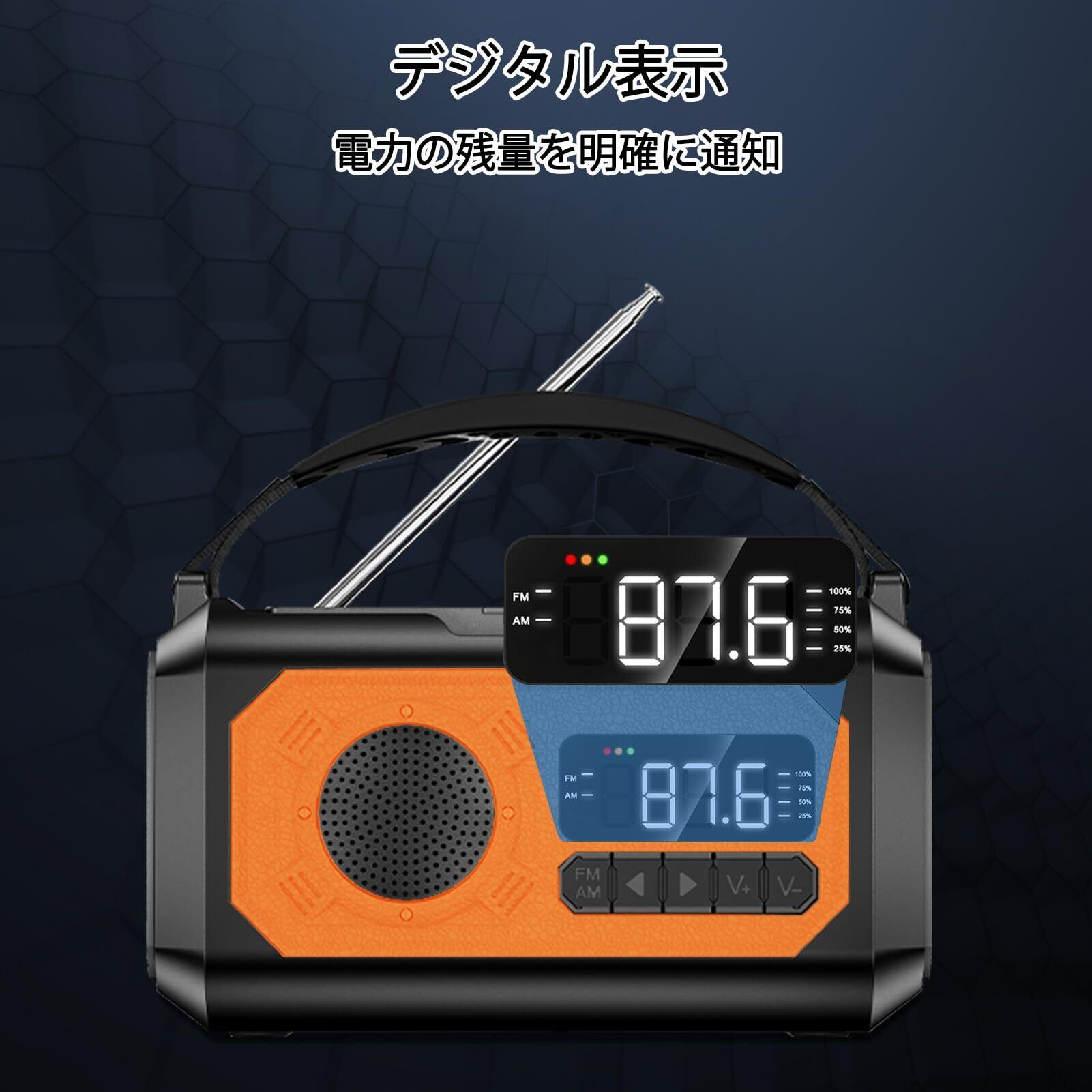 【コンパクトで軽量・電力表示】携帯ラジオのサイズ:15.6cmx8cmx8.6cm、重量:610g。スペースを取らず、コンパクトなデザインと実用的なストラップで旅行に最適です。コンパスがあるので、道に迷っても方角を見つけられます。家庭用にも携帯用にも最適です。LEDディスプレイは残りの電力を4段階(25%、50%、75%、100%)で表示し、防災ラジオの使用状況を簡単に把握できます。