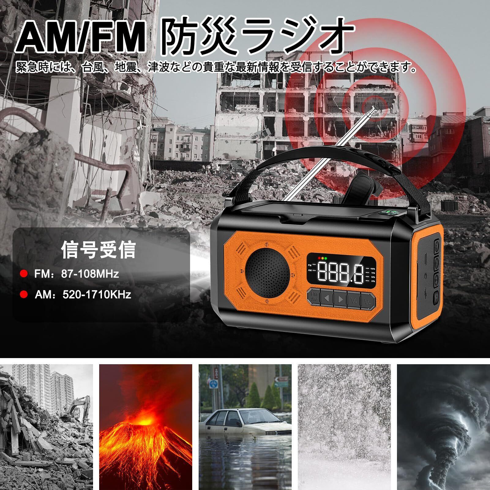 **AM/FMラジオ機能を搭載しており、緊急時の最新情報をしっかりキャッチできます!** 地震や台風など、緊急時の情報収集に欠かせないアイテムです。
