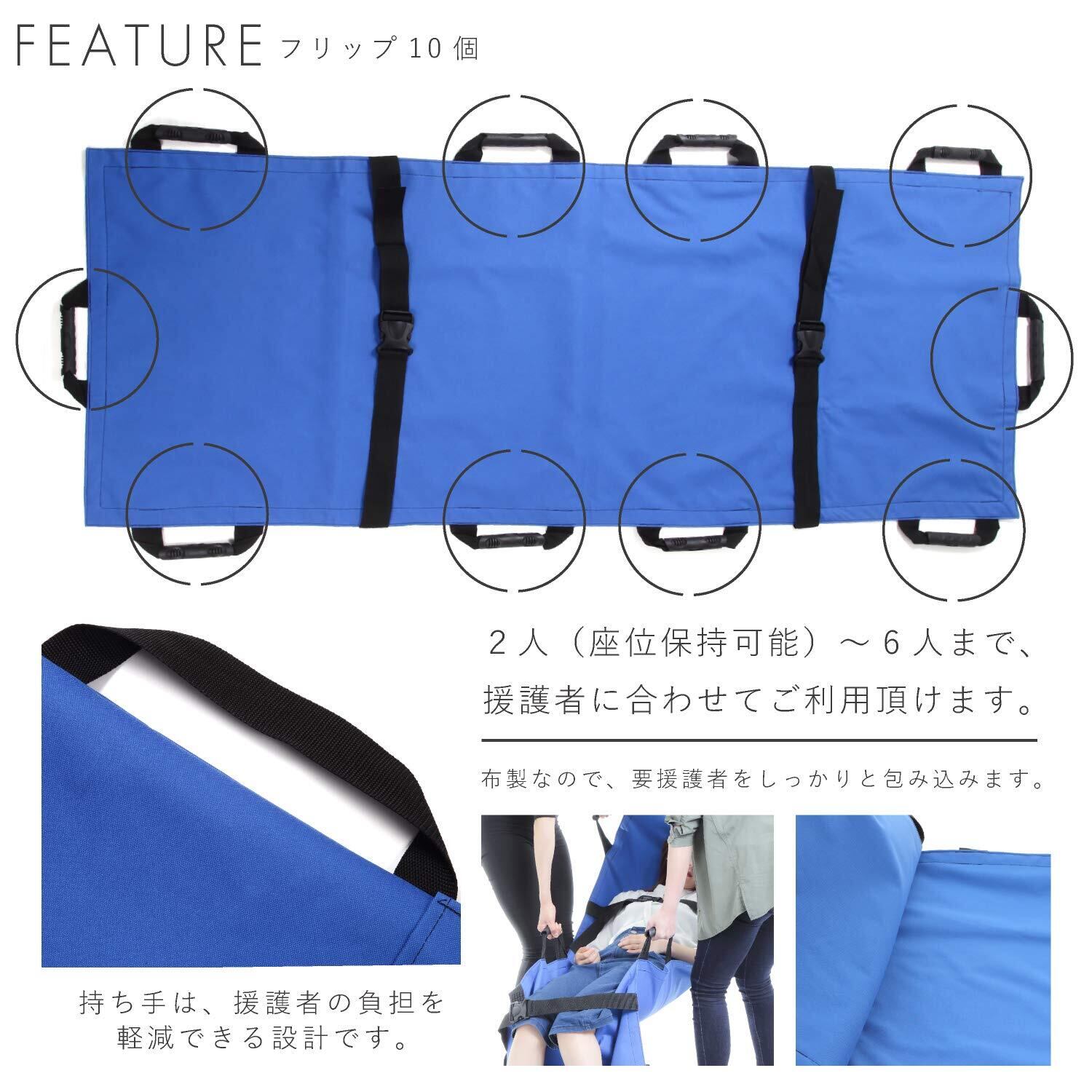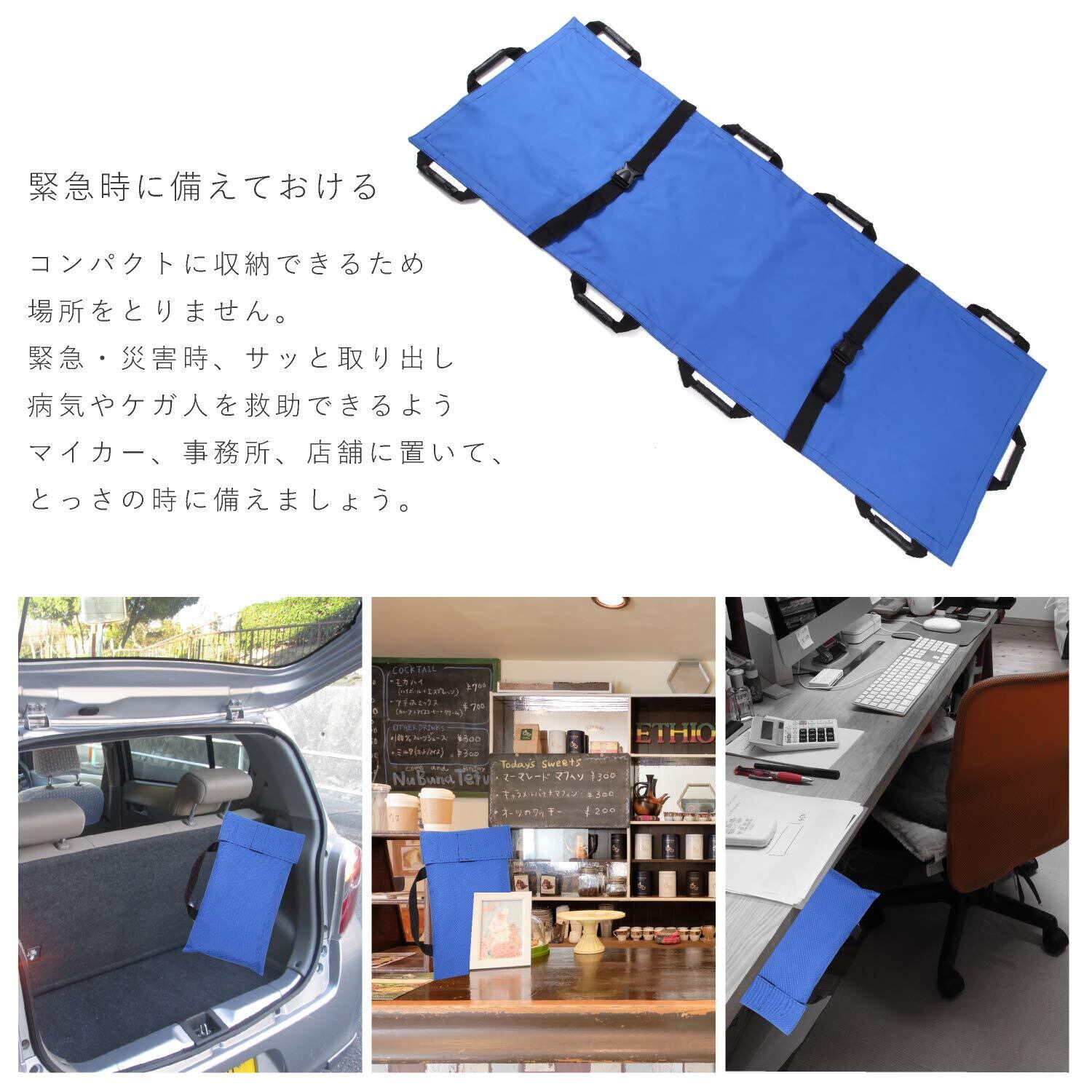 マルチ担架 担架 布担架 救急 救護 災害 防災 介護 緊急 患者移動用シート 180×70cm しっかりした持ち手 安全ベルト 収納袋付き (ブルー)