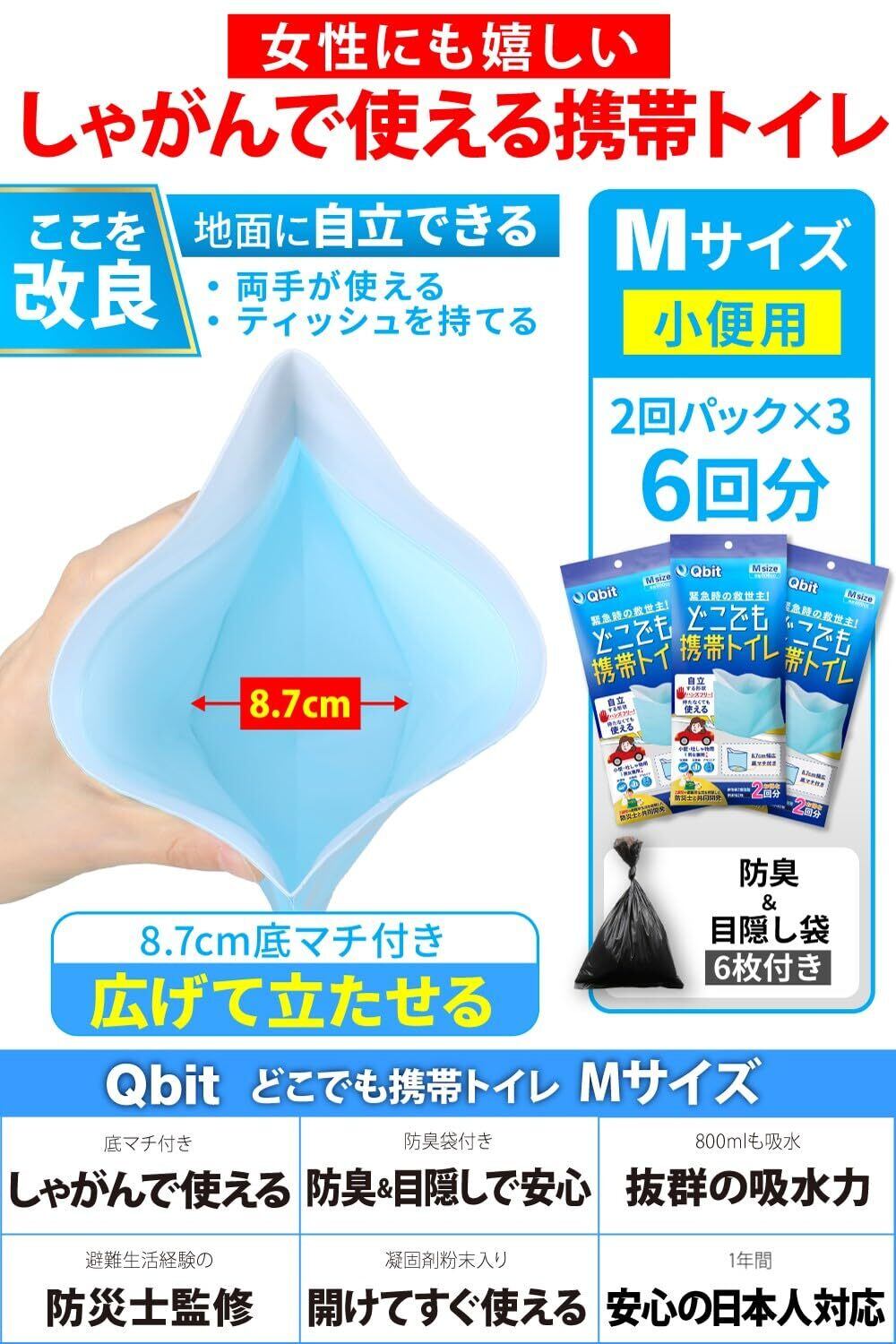 Qbit どこでも携帯トイレ 小便用 非常用/災害用/簡易トイレ 【防災グッズ大賞2023 大賞ブランド】 選べる形 エチケット袋 車 渋滞 登山 防災グッズ 廃棄袋付 男女兼用 (受け口付 Mサイズ 6回分)