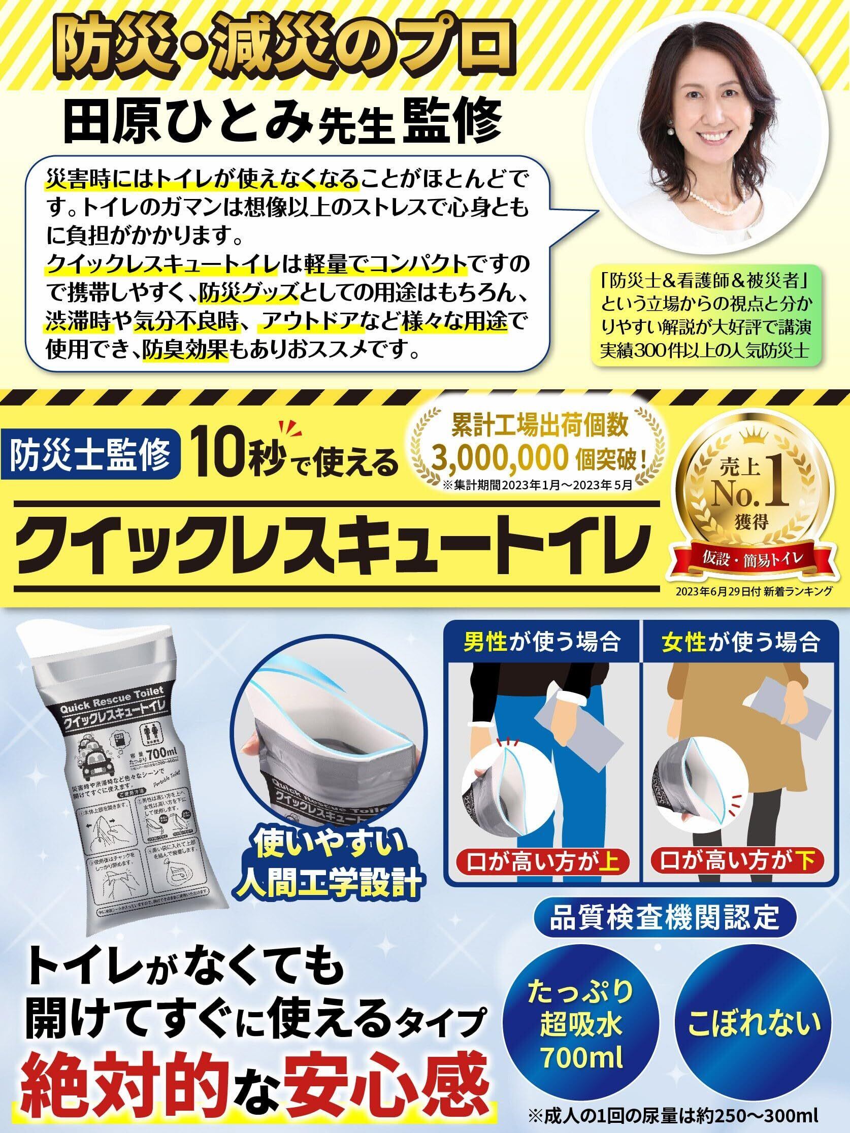 この「携帯トイレ」は、**300件以上の講演実績を持つ人気防災士が監修した安心のアイテムです!** 災害時に必要不可欠な防災グッズとして、お子様から大人まで幅広くご利用いただけます。