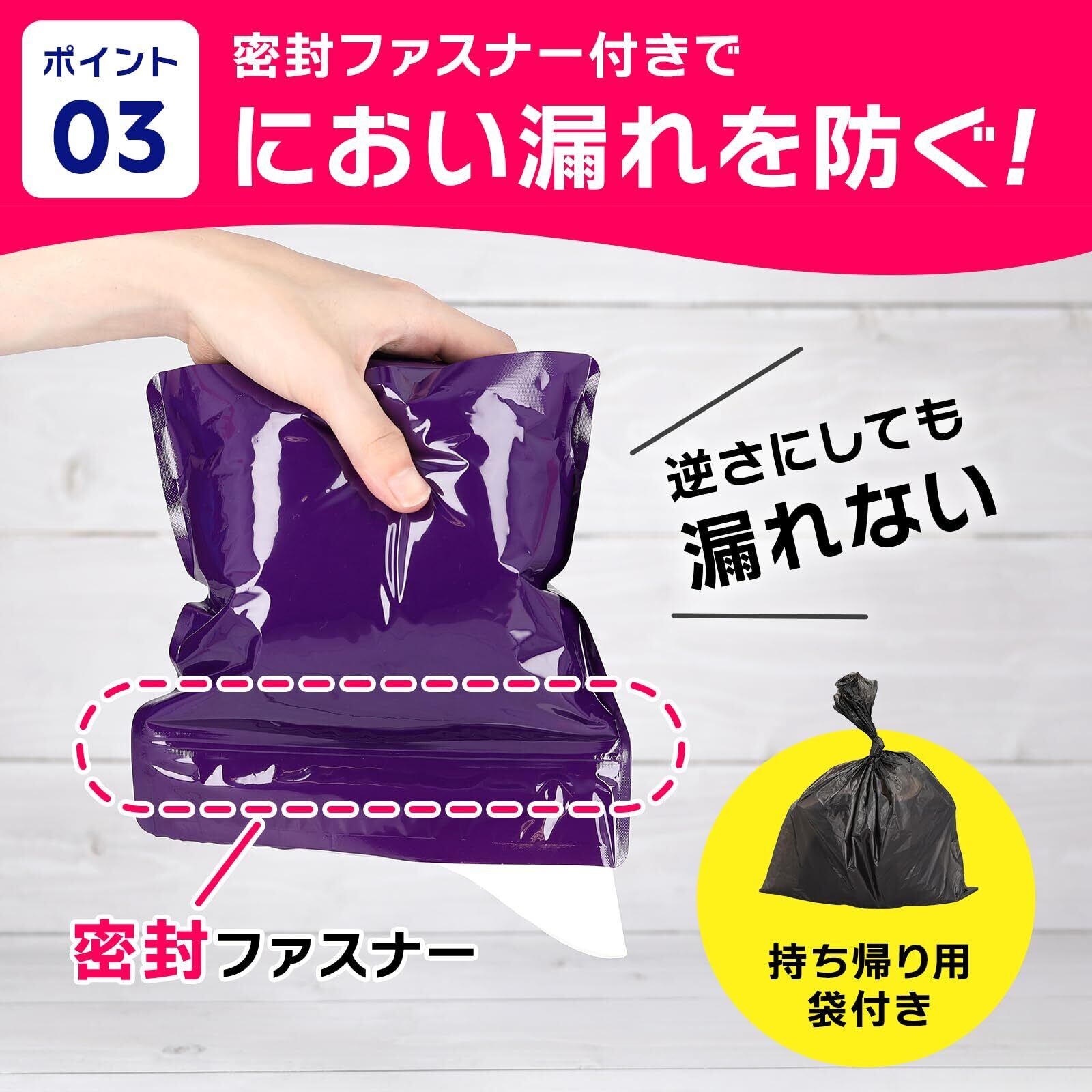 **災害時はもちろん、車中泊や登山、旅行においても無理なく活用できます!** この「携帯トイレ」は、あなたと大切な人の安心を守るための必需品です。