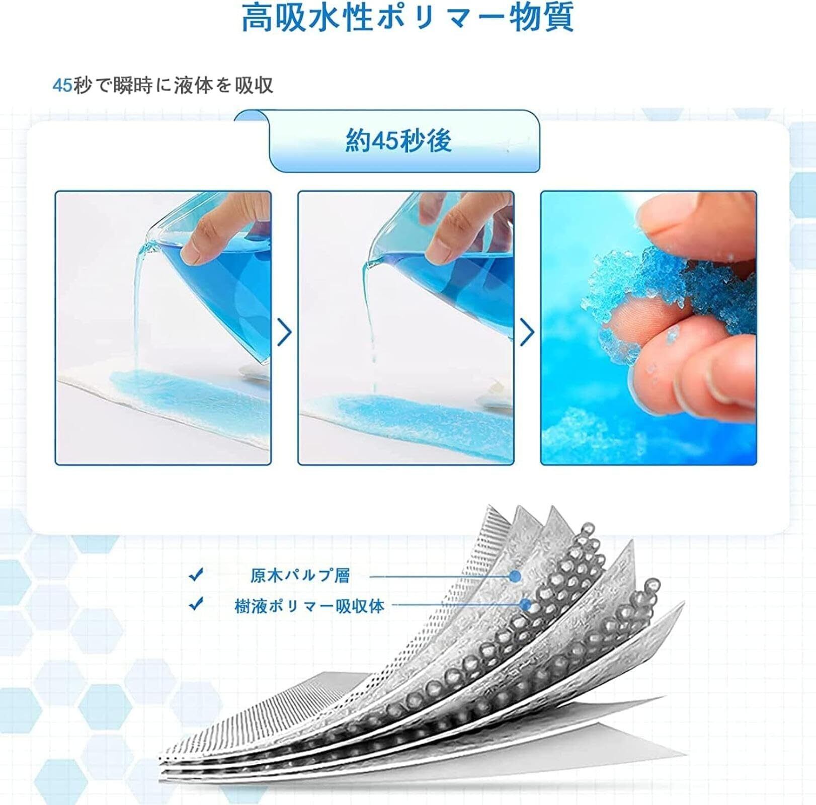 【45秒以内に吸収可能】こちらのミニトレイはSAP吸水ポリマーを使用しています。おしっこ、嘔吐物やその他の液体廃棄物を吸収して、臭いを消して、無臭で飛び散らさないジェルに変わります。45秒以内にしっかり液体を吸収して、すぐ固まります。