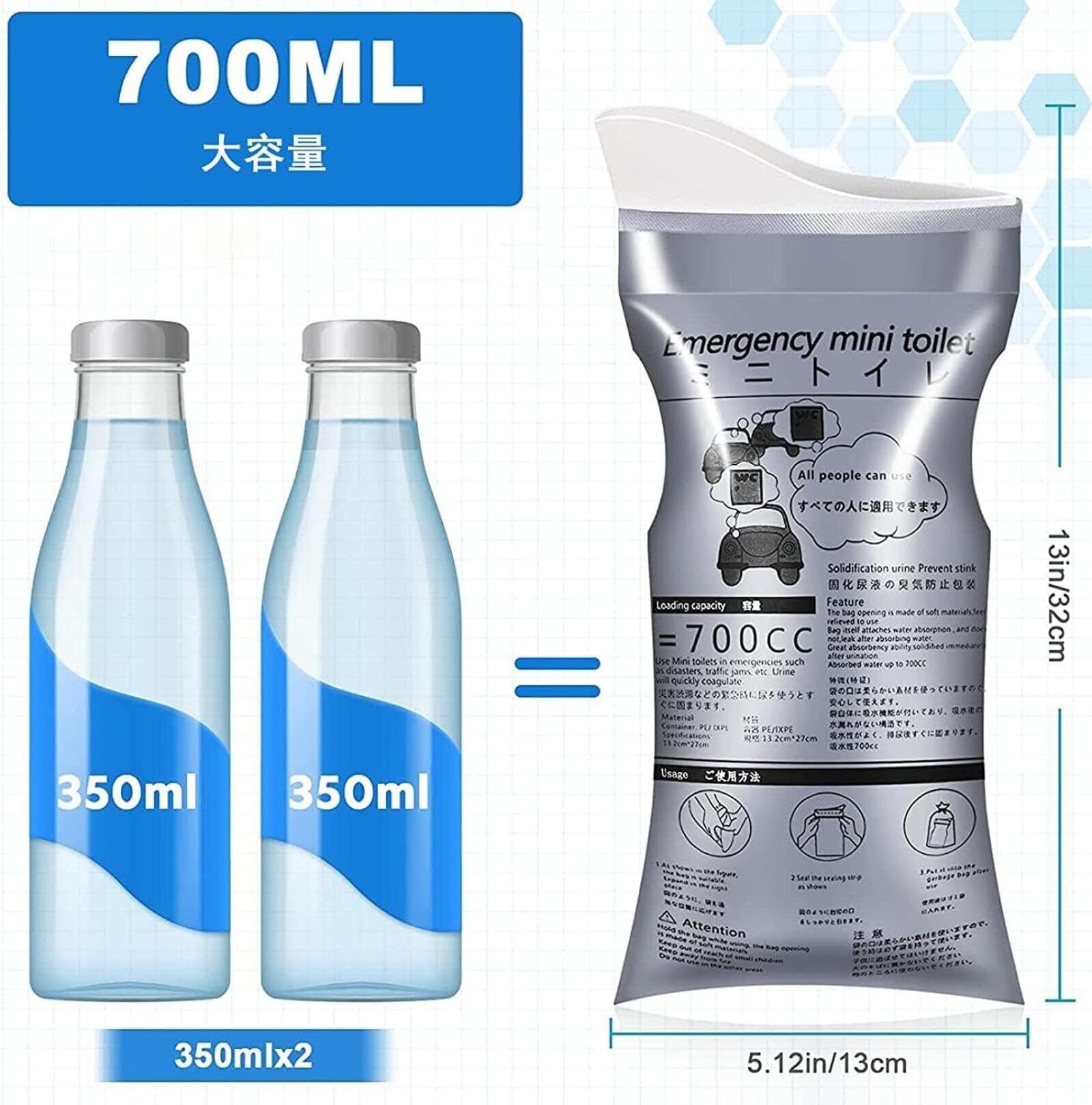 **700ccの容量を誇り、男女兼用で安心して使用できるデザインです!** 使いやすさを追求した設計により、緊急時の必需品として非常に便利です。