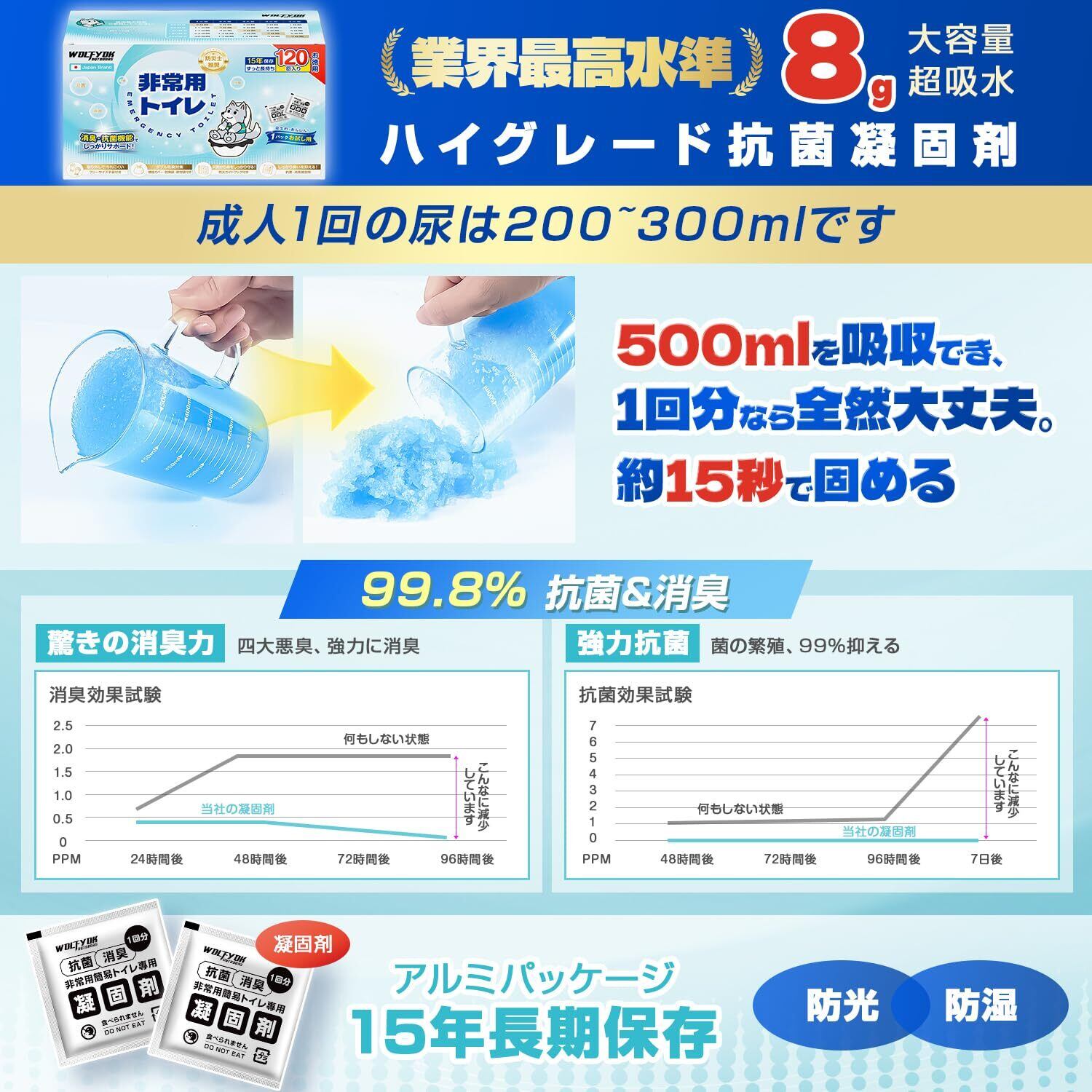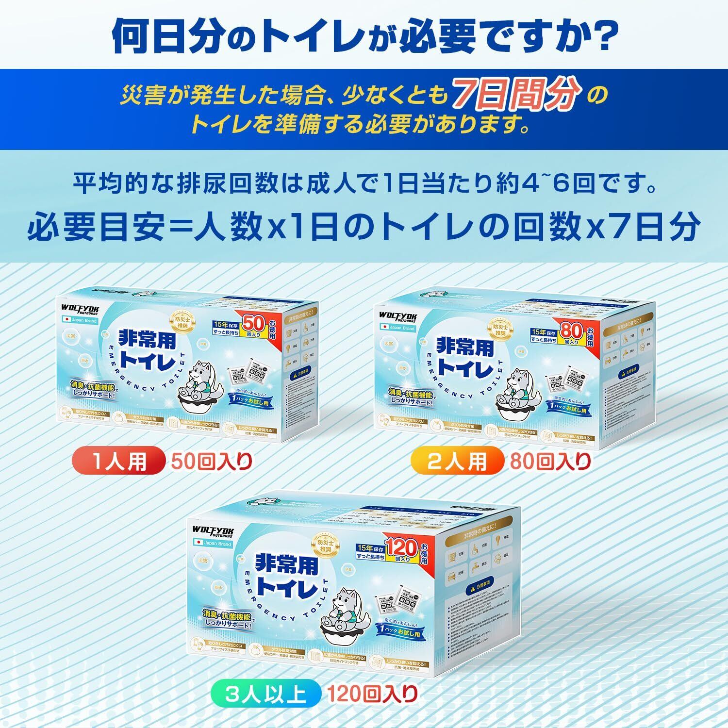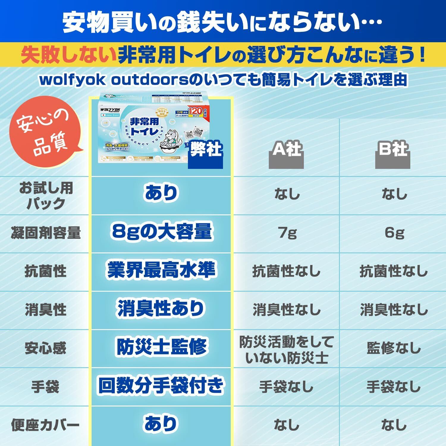 簡易トイレ 非常用トイレ 【防災士監修】 防災トイレ 凝固剤 【1パックお試し用・8g大容量で超吸水】 防災グッズ 災害用 トイレ 抗菌・防臭 15年保存・ガイドブック付き 救急/携帯トイレ 50回/80回/120回セット 緊急用/キャンプテント用/車内用/介護用 Wolfyok outdoors
