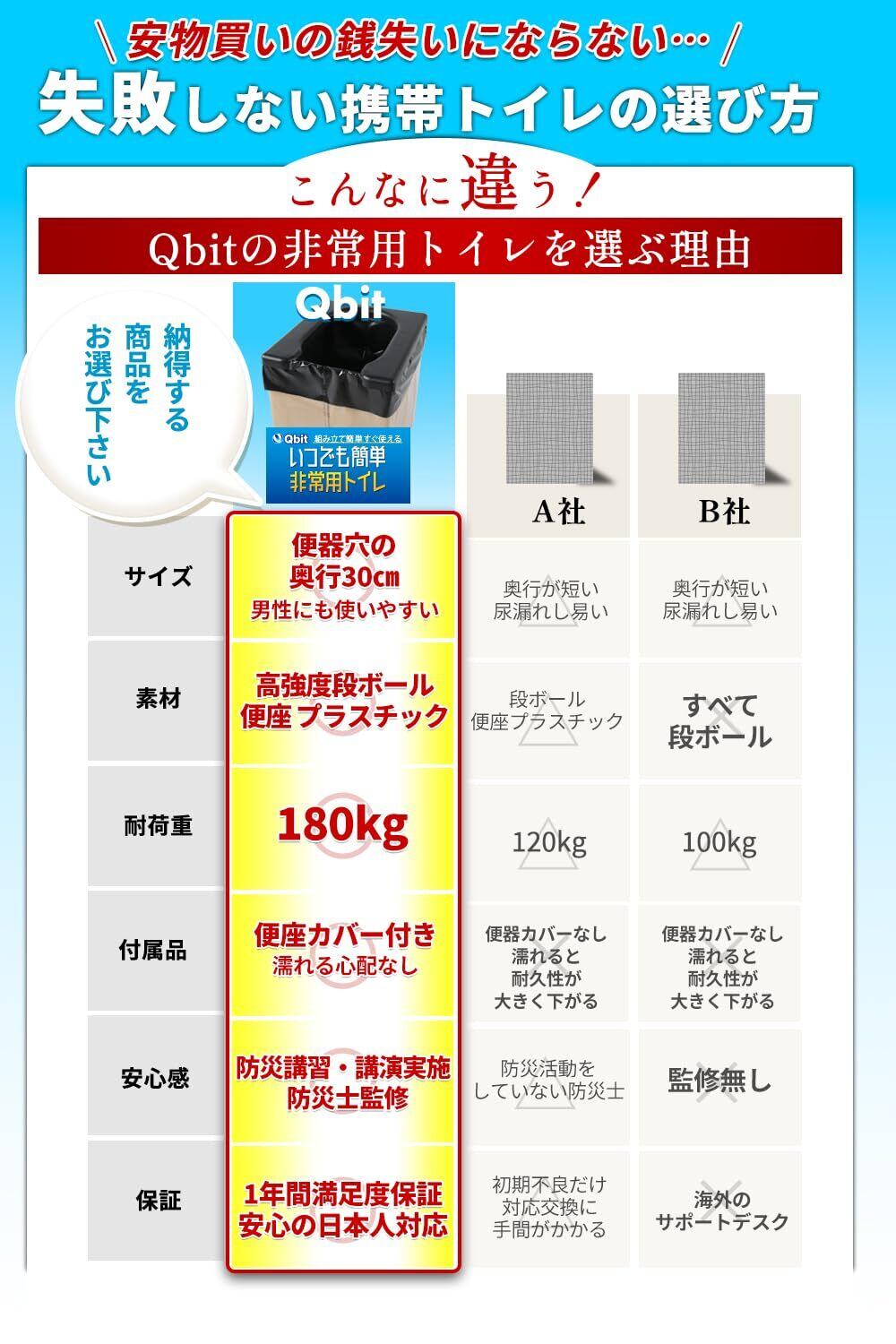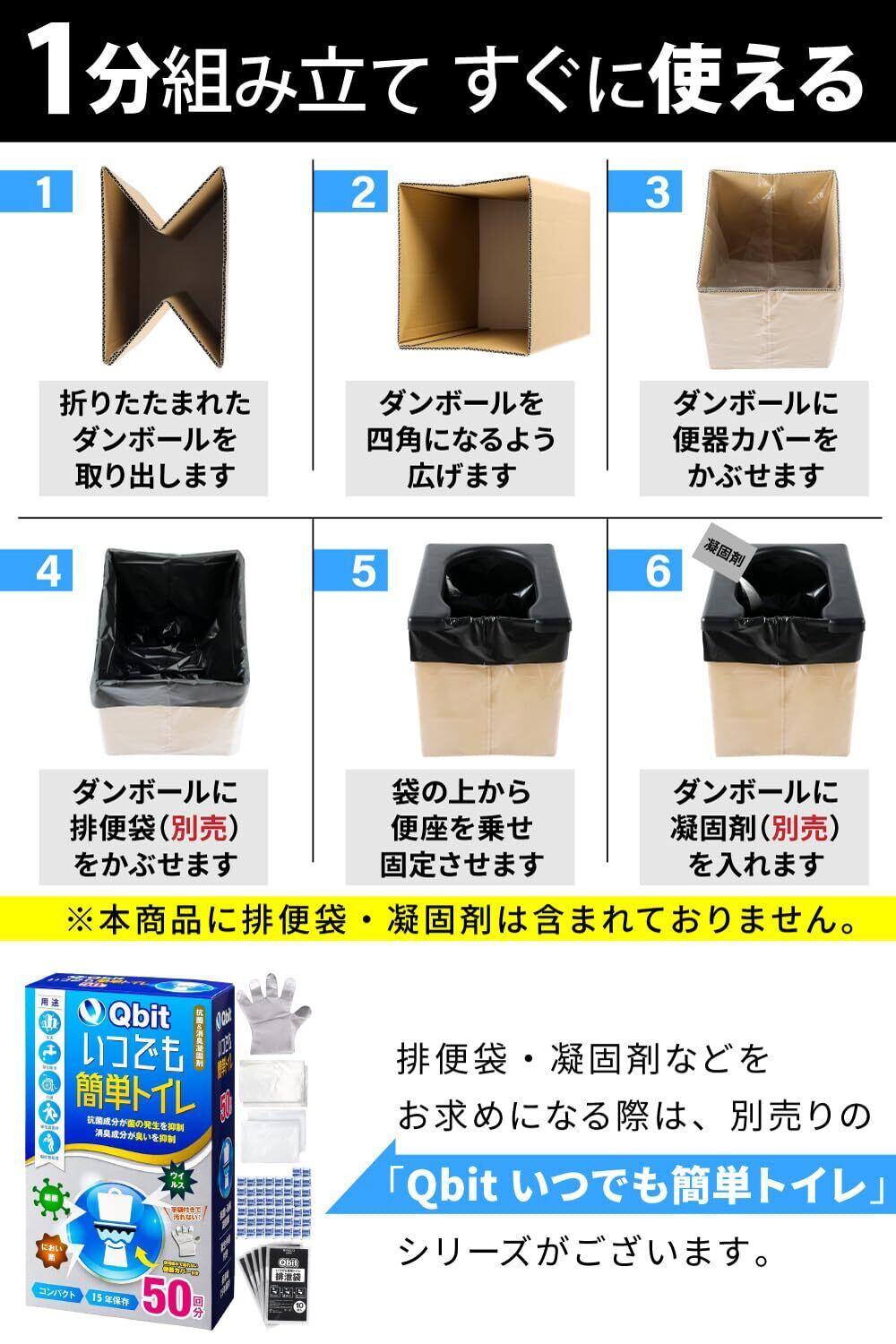 この「Qbit 非常用トイレ」は、**家庭でも車内でも便利に使用でき、防災対策にも最適な商品です!** 大切な人を守るための心強いサポーターとなります。