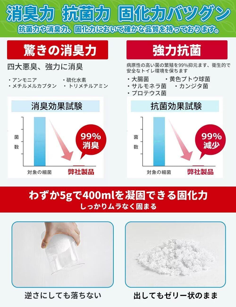 **使用後は凝固剤が液体を迅速に固形化し、衛生的な処理が可能です!** 消臭性能も優れているため、気になる臭いをしっかり封じ込めます。後処理も簡単で、安心してご使用いただけます。