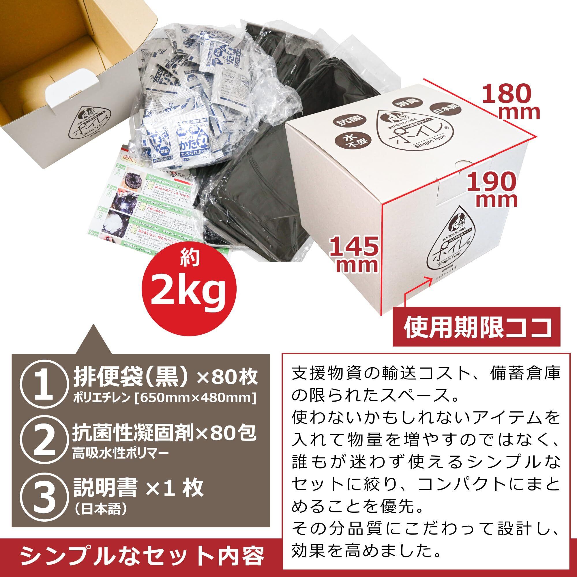 シンプルタイプ 80回分 【防災士監修】 簡易トイレ 携帯トイレ 日本製 15年保存 抗菌 消臭 凝固剤 排便袋 災害トイレ 防災