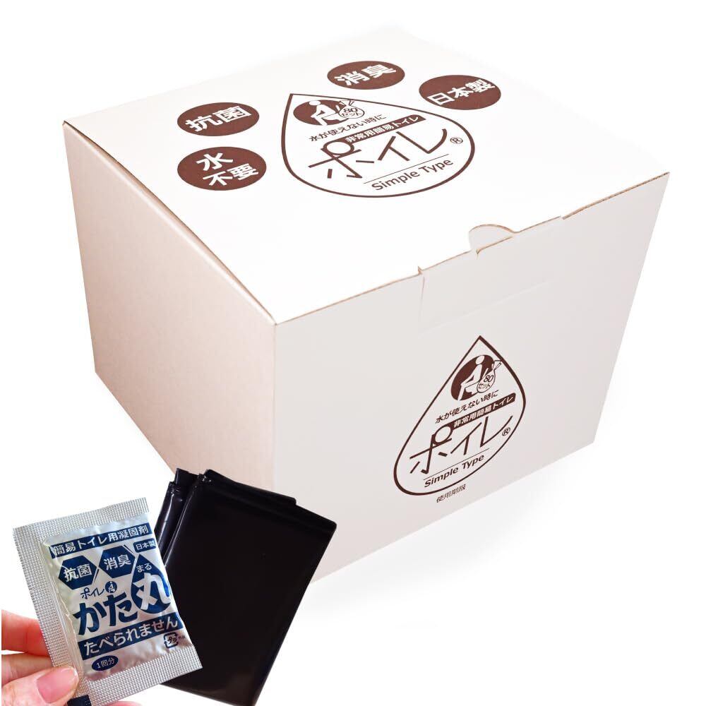 「シンプルタイプ 簡易トイレ」は、**80回分の使用に対応した便利なセットです!** 地震や台風、断水など、様々な緊急シーンに対応し、ご自宅やアウトドアでの安心を実現します。