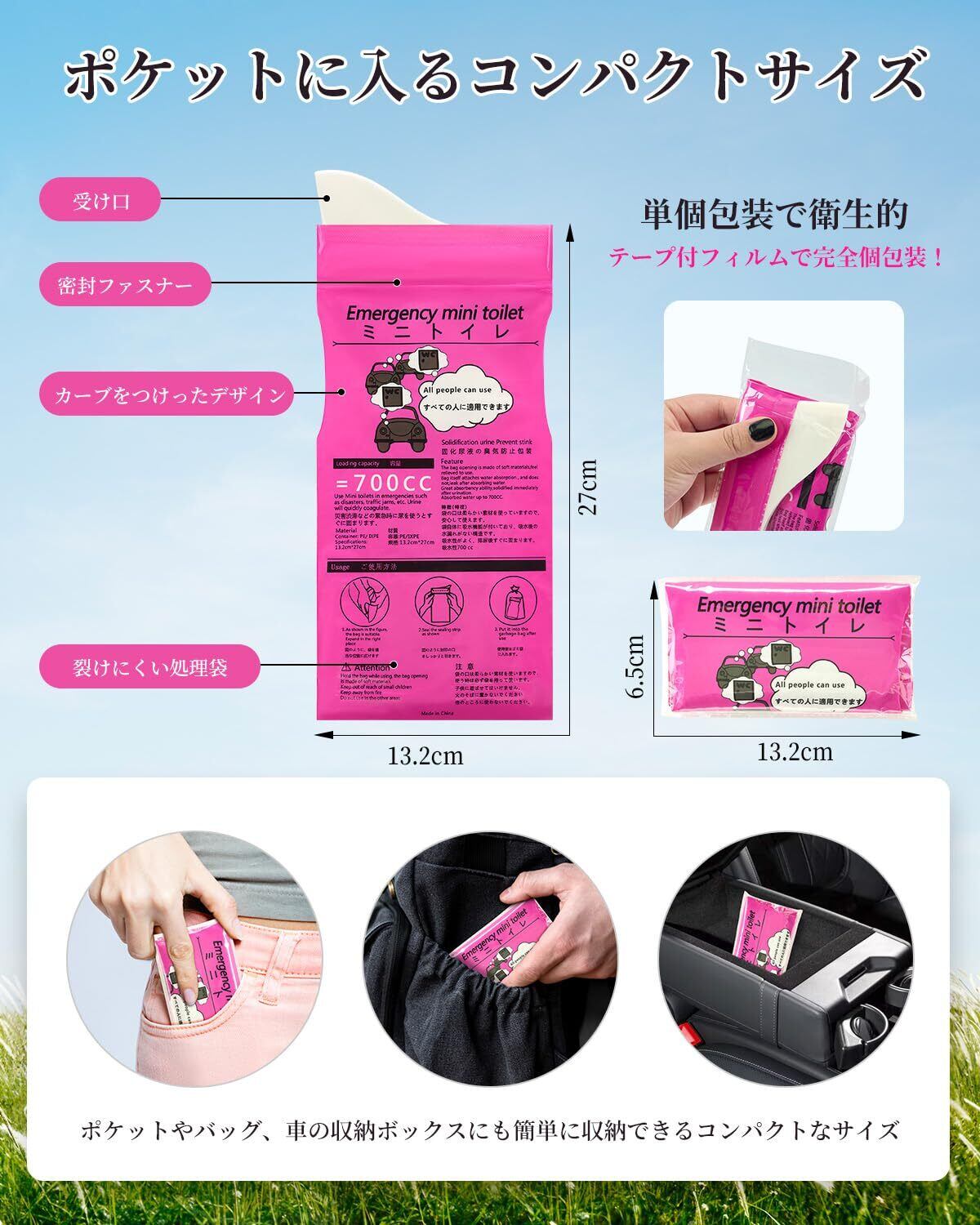 [Laberush] 簡易トイレ 車 携帯トイレ 災害用トイレ 10回分 登山 防災 非常用トイレ 700cc 消臭 除菌 仮設トイレ 子供 男女兼用 ポータブルトイレ 個包装 軽量 携帯便利 渋滞 キャンプ 断水時 緊急時(ダックピンク)
