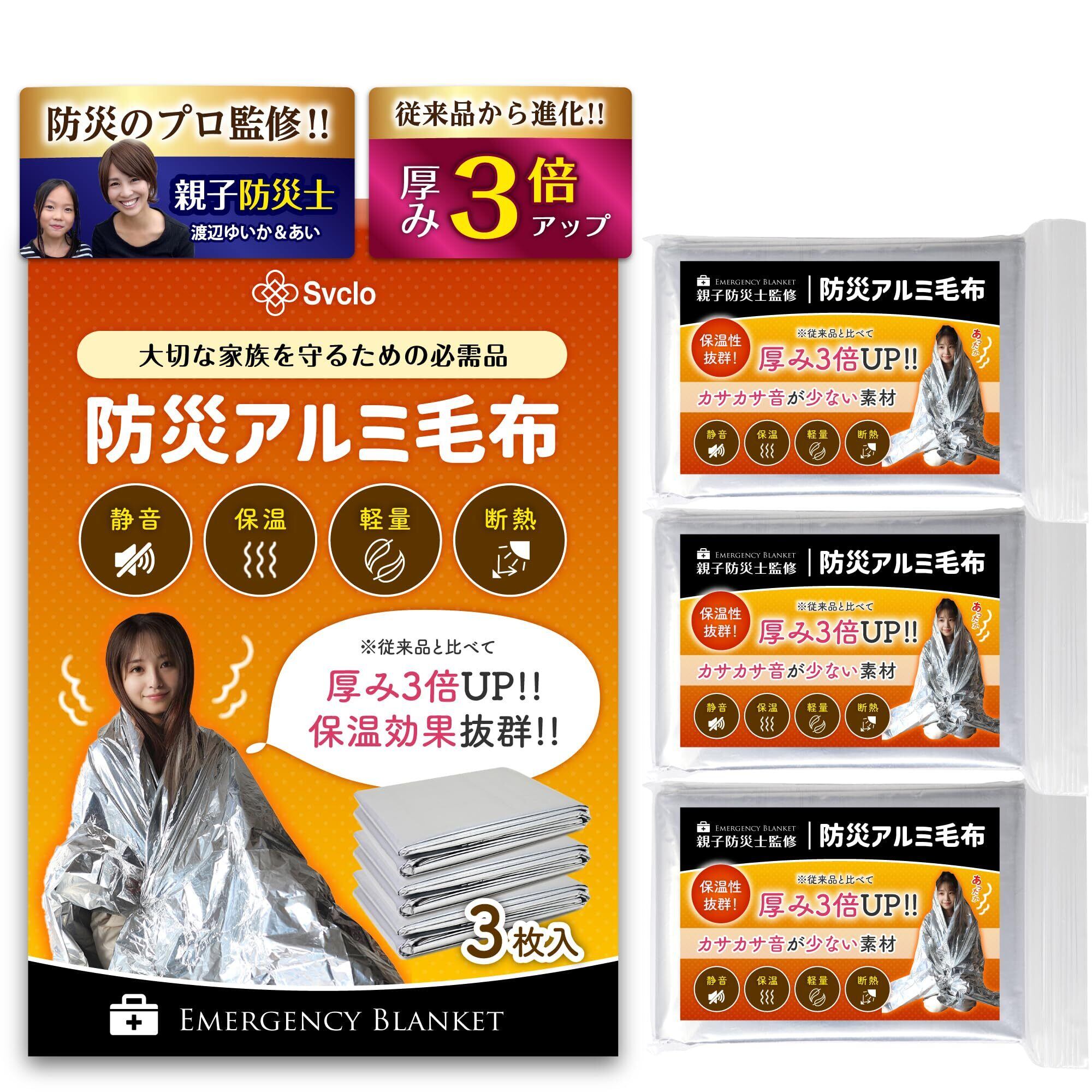 【従来品を改良!厚み3倍UP!保温性抜群の防災グッズ】 防災教室を開催し、防災グッズや災害グッズの監修を手掛ける防災士監修のサバイバルシート。従来品より厚みを3倍にアップし、保温性が飛躍的に向上!冷たい空気をしっかりブロックし、体温低下を防ぎます。冬の防寒グッズとしてはもちろん、夏は日よけ対策にも使える万能タイプです。日頃から防災意識を高め、いざという時に備えることが大切。 この防災アルミ毛布は、ご家族の人数分を備えておくことで、より安心感を持つことができます。コンパクトで軽量なので、防災バッグやリュック、車の中にも常備しやすいです。 【耳障りなカサカサ音を抑えた静音タイプ】 従来のアルミシート特有の耳障りなカサカサ音を抑えた静音仕様。避難所や車内、狭い空間でも周囲を気にせず安心して使えます。お子さんや高齢者の方でも快適に使用可能! 【災害グッズとしてだけじゃない!アウトドア・レジャーでも活躍】 この防災グッズは、災害時だけでなく、キャンプ、登山、スポーツ観戦、フェス、車中泊など幅広いシーンで活躍!急な天候の変化や寒さ対策に1枚あると安心です。 【防災ガイド付属!いざという時に役立つ知識を掲載】 この防災グッズには、防災士監修の防災ガイドが付属。防災準備のポイントや、災害時の行動マニュアルが記載されており、緊急時の参考になります。防災バッグに入れておくことで、いざという時に役立ちます。 【コンパクト収納!持ち運びやすい防災グッズ】 広げたサイズは130cm×210cmと大きめですが、収納時は15cm×21cmのコンパクトサイズ。専用の収納袋付きで、リュックや防災バッグ、車の中などにスッキリ収納できます。備えておけば、災害時やアウトドアでの防寒・防風・防水対策に役立ちます。 【ホルムアルデヒド検査合格!デリケートな肌の方も安心】 本製品は、人体に悪影響を及ぼす可能性のあるホルムアルデヒドの検査をクリア! 一般財団法人カケンテストセンターにて検査を行い、安全性が証明されています。お子様や敏感肌の方も安心してご使用いただけます。 検査機関:一般財団法人カケンテストセンター 検査日:2025年2月21日 災害時(地震・津波・台風・洪水・豪雨・防風) 救助待ちの体温維持 → 冷えによる体力消耗を防ぐため、身体を包んで防寒 避難時の防寒・防風対策 → 屋外や避難所での寒さ・冷風を遮断 停電時の保温 → 暖房が使えない状況でも簡易毛布として活用 避難所の床冷え対策 → 床に敷いて冷えを軽減し、快適な睡眠環境を確保 登山・ハイキング(アウトドア緊急用) 遭難時の体温保持 → 低体温症を防ぐため、身体を包み込んで保温 急な天候変化や夜間の防寒対策 → 標高の高い場所や急な雨・風から身を守る 救助用の目印として使用 → 銀・金色の反射光を利用して救助隊にアピール 荷物の防水カバー → リュックや寝袋を雨や雪から守る キャンプ・野営(アウトドア防寒&快適グッズ) レジャーシートとして → 湿った地面や汚れた場所で快適に座れる 簡易ブランケット → 夜間や早朝の冷え対策に テント内の保温 → 壁面や床に敷いて冷気を遮断し、暖かさをキープ 防水シートとして → 荷物や寝具を雨から守る 野外音楽フェス・スポーツ観戦 日よけ対策 → 銀色の面を外向きにして直射日光を反射し、暑さを軽減 雨天時の寒さ対策 → 雨で濡れた服の乾燥&体温低下を防ぐ 荷物の保護 → 地面の泥・湿気からバッグや貴重品を守る 車中泊・ドライブ 冬の防寒対策 → エアコンなしでも車内で体温をキープ 夏の熱対策 → フロントガラスに設置して日差しを遮る その他の活用例 ペットの防寒対策 → キャリー内の防寒や外出時の温度調整に 災害時のプライバシー確保 → 避難所での間仕切りや目隠しとして こんな人におすすめ! 防災対策をしっかりしたい家庭(家族の人数分備蓄) アウトドア好き(キャンプ・登山・フェス・スポーツ観戦) 車中泊やドライブをよくする方(緊急時に備えたい人) ペットを飼っている方(寒さ対策・快適な移動) 【商品詳細】 用途:アルミ毛布、サバイバルシート、アルミシート、エマージェンシーシート、防災シート 広げたサイズ:130cm×210cm 収納サイズ:15cm×21cm(専用収納袋付き) ブランド名:Svclo 用途:防災グッズ、災害グッズ、備蓄用品、アウトドア用品 万が一の初期不良などがございましたら、お気軽にお問い合わせください。 お客様の安全と満足を第一に、精一杯サポートいたします!