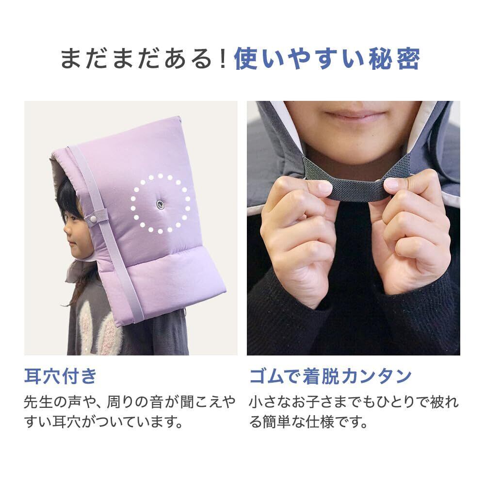 防災頭巾カバー付き 座布団 クッション にもなる 防災頭巾 2点セット 防災ずきん 幼稚園 小学生 子供 着脱簡単 ゴム ネームタグ 肩掛け ショルダー 耳穴 背もたれ 防災 クッション (パープル)