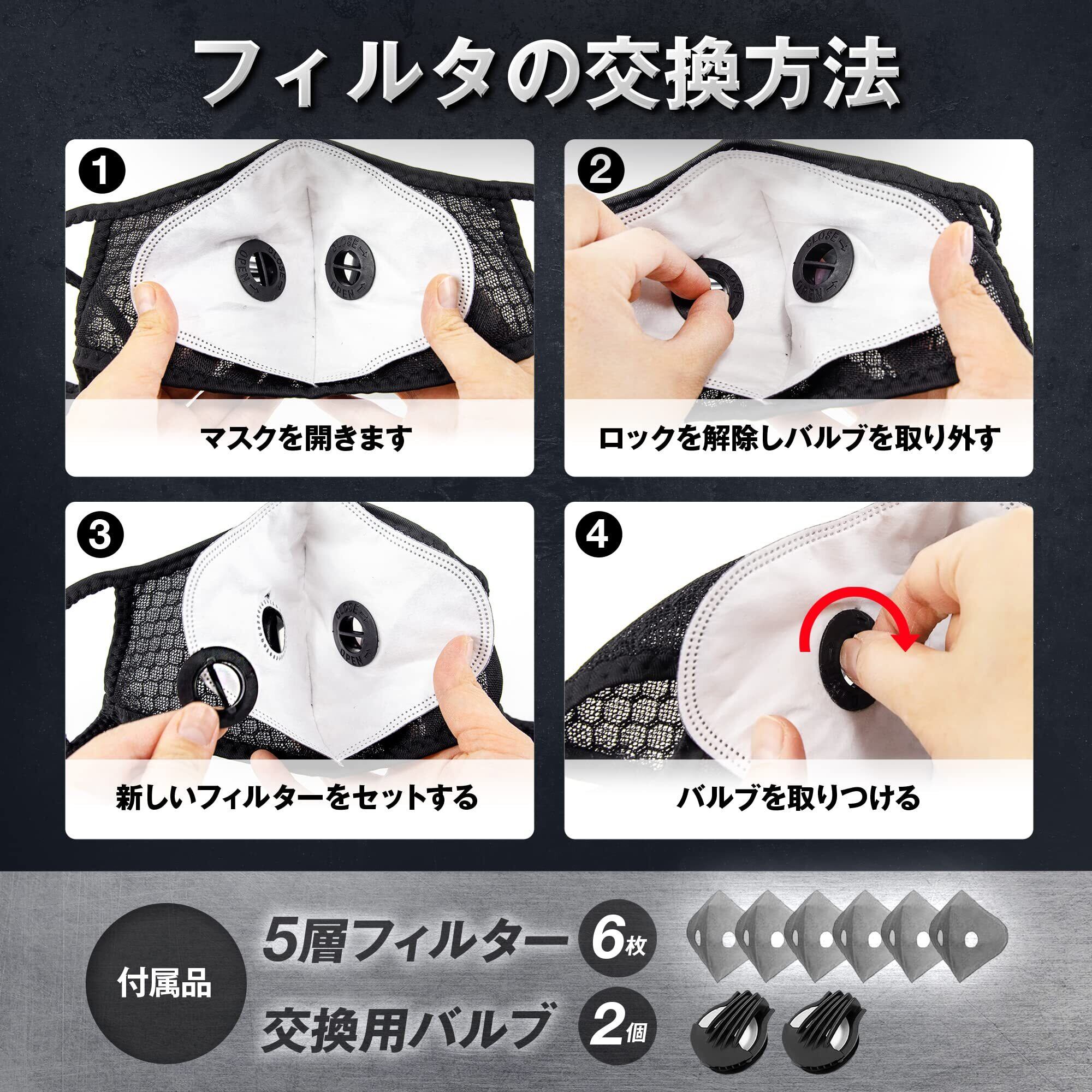 [Mr.VALVE] 公式【快適 バルブ 機能付き 高機能 スポーツ マスク】 PM2.5 対応 高性能 5層 フィルター 6枚 スペアバルブ 1セット オマケ付 木工 切削 建築 作業 粉塵 花粉 ホコリ 対策に 洗濯可能 繰り返し使える 通気性 メッシュ素材 バイク 自転車 通勤 ランニング サバゲー トレーニング 登山