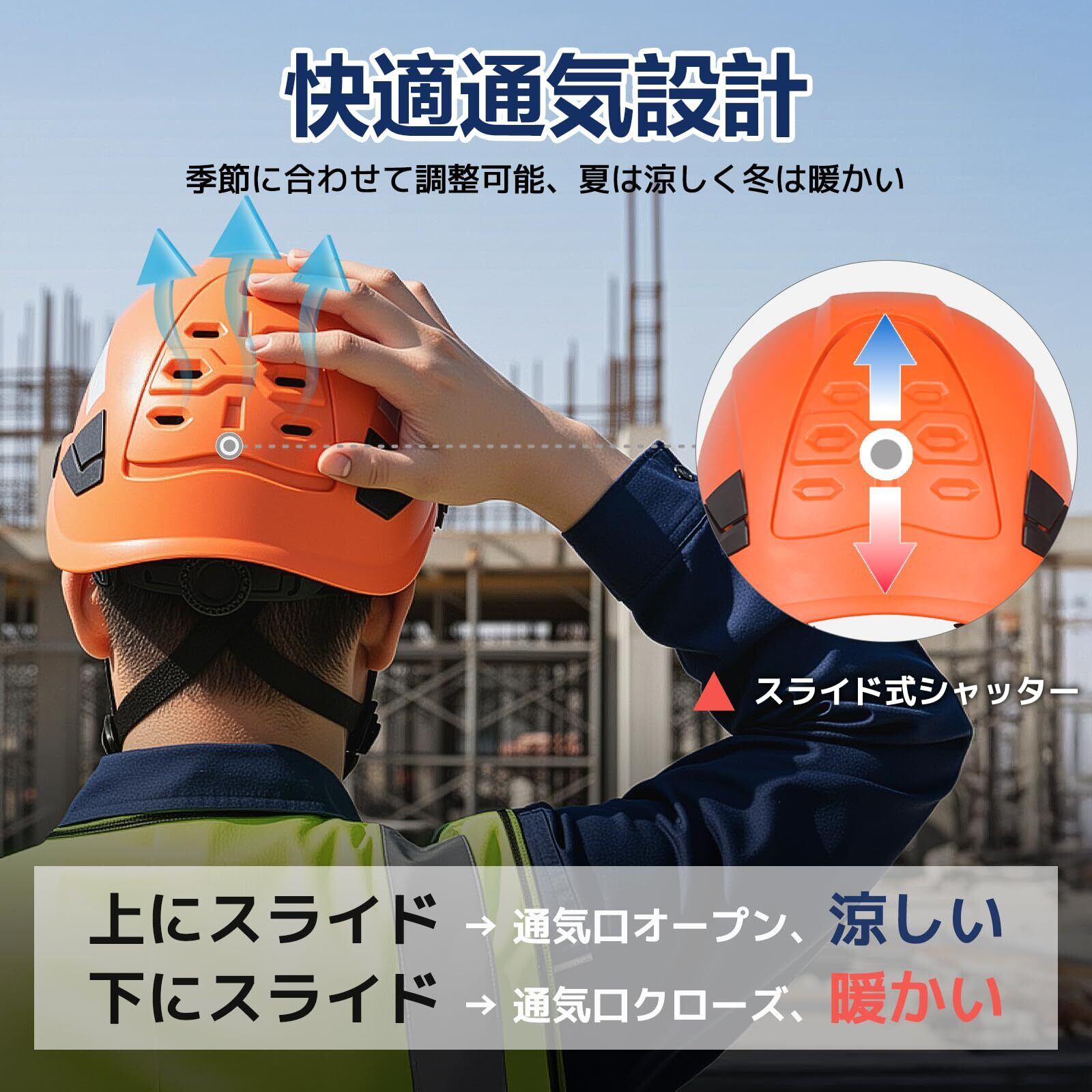 ️ 【安全性と快適性を両立】オレンジ色のヘルメットは視認性が高く、夜間の安全性をさらに高めるためにトップとサイドに銀色の反射テープが配置されています。4つのヘッドランプクリップを装備しており、夜間作業にも非常に便利です。また、アゴバンドの耳紐がヘルメットのズレや脱落を防止し、バックルで簡単に取り外しができます。