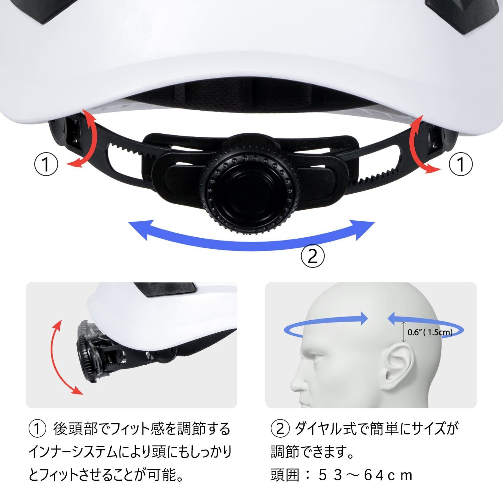 **53~64cmの大きなサイズに対応しており、様々な頭の形やサイズにフィットします!** フル adjustable なサイズ調整機能が備わっているため、堅牢で快適なフィット感を提供します。