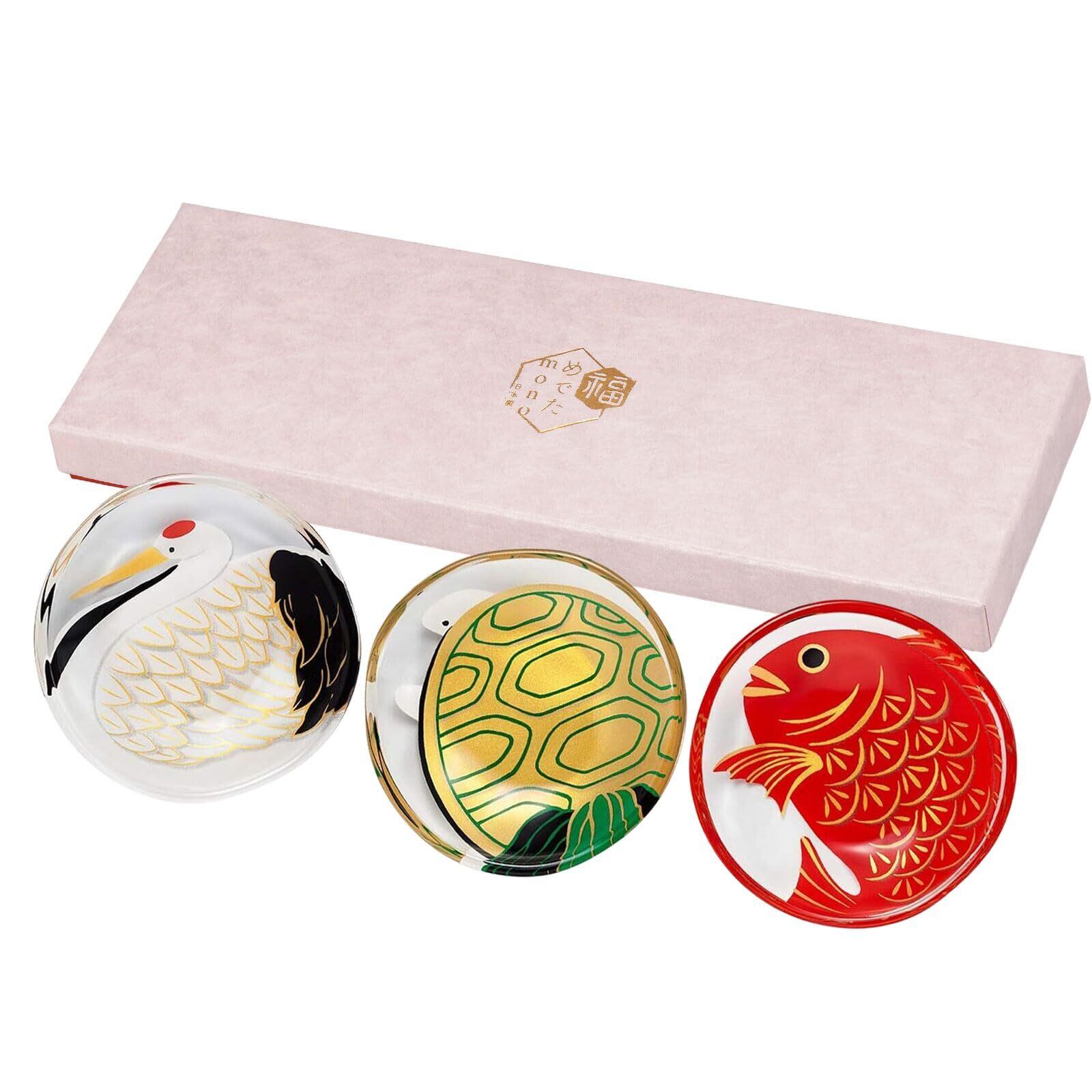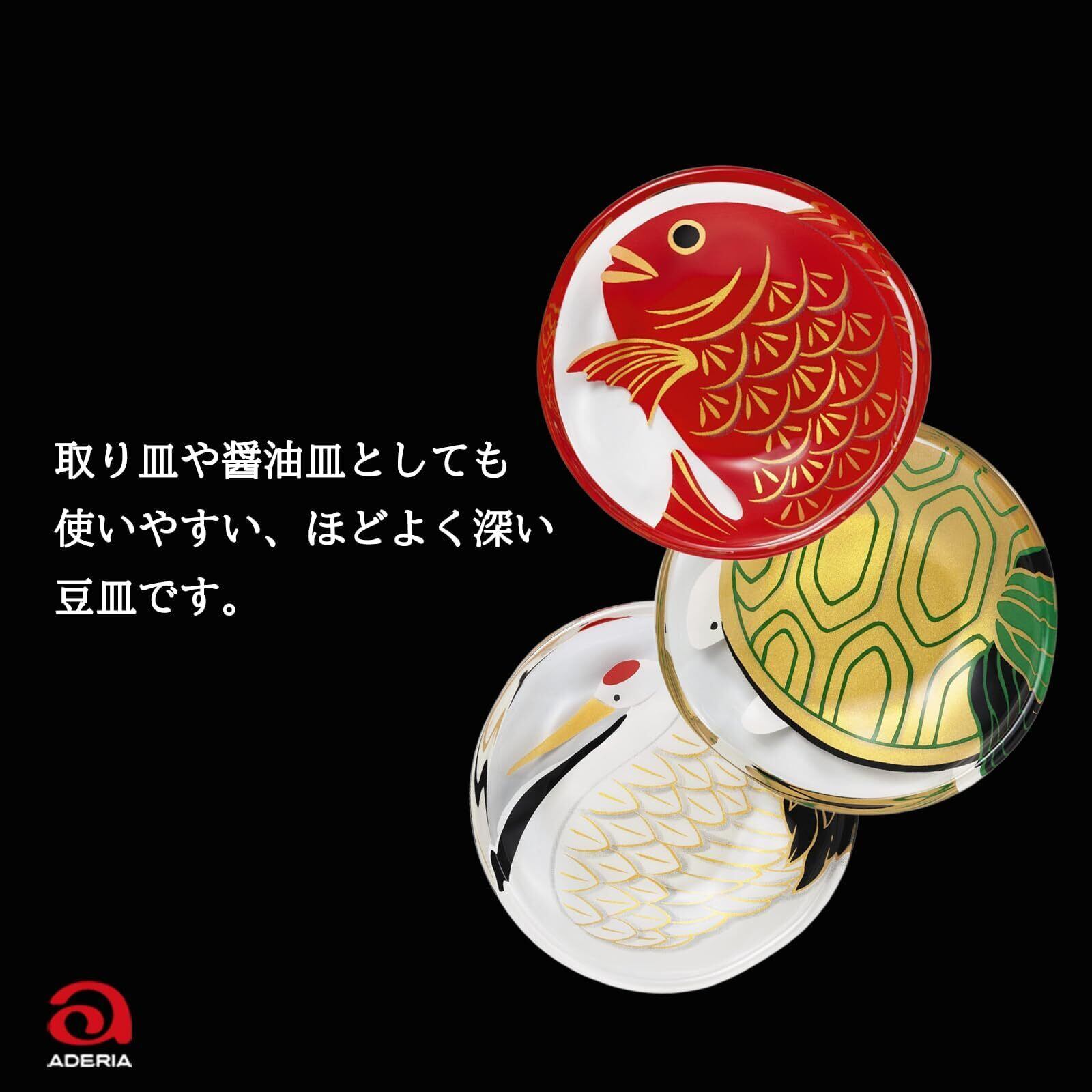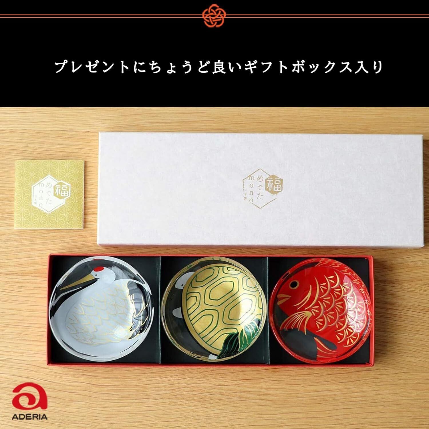 アデリア(ADERIA) めでたmono 福寿 豆皿鶴亀鯛 3枚セット 日本製 化粧箱入 小皿 醤油皿 おしゃれ 取り皿 お皿 プレート 食器 ガラス 和食器 和菓子 ギフト 女性 母の日 食器 父の日 夫婦 男性 引越し祝い 結婚 挨拶回り 退職 誕生日 プレゼント 記念日 贈り物 S6309