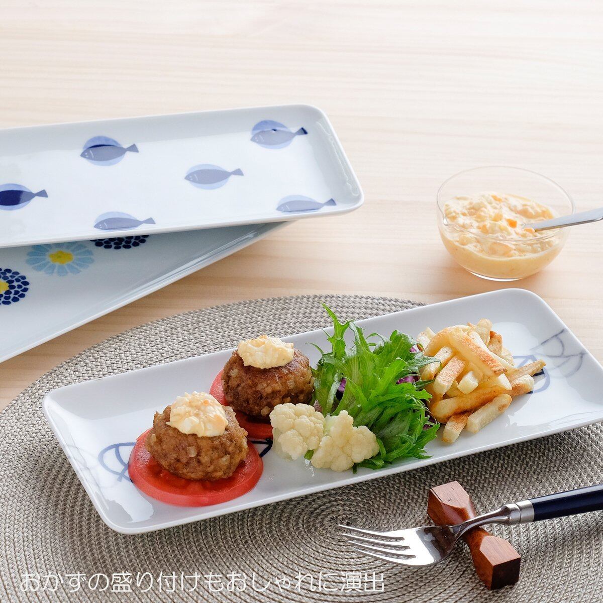 このプレートにお好みの料理を盛り付けて、楽しむひとときをお過ごしください!魚柄のデザインがお料理をより一層美しく展示します。