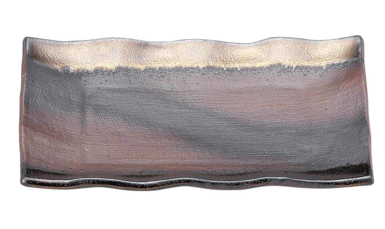 \【◆萬古焼 焼物皿 長皿 備前金彩 11798 : 和の美を堪能できる魅惑的な長皿!】/