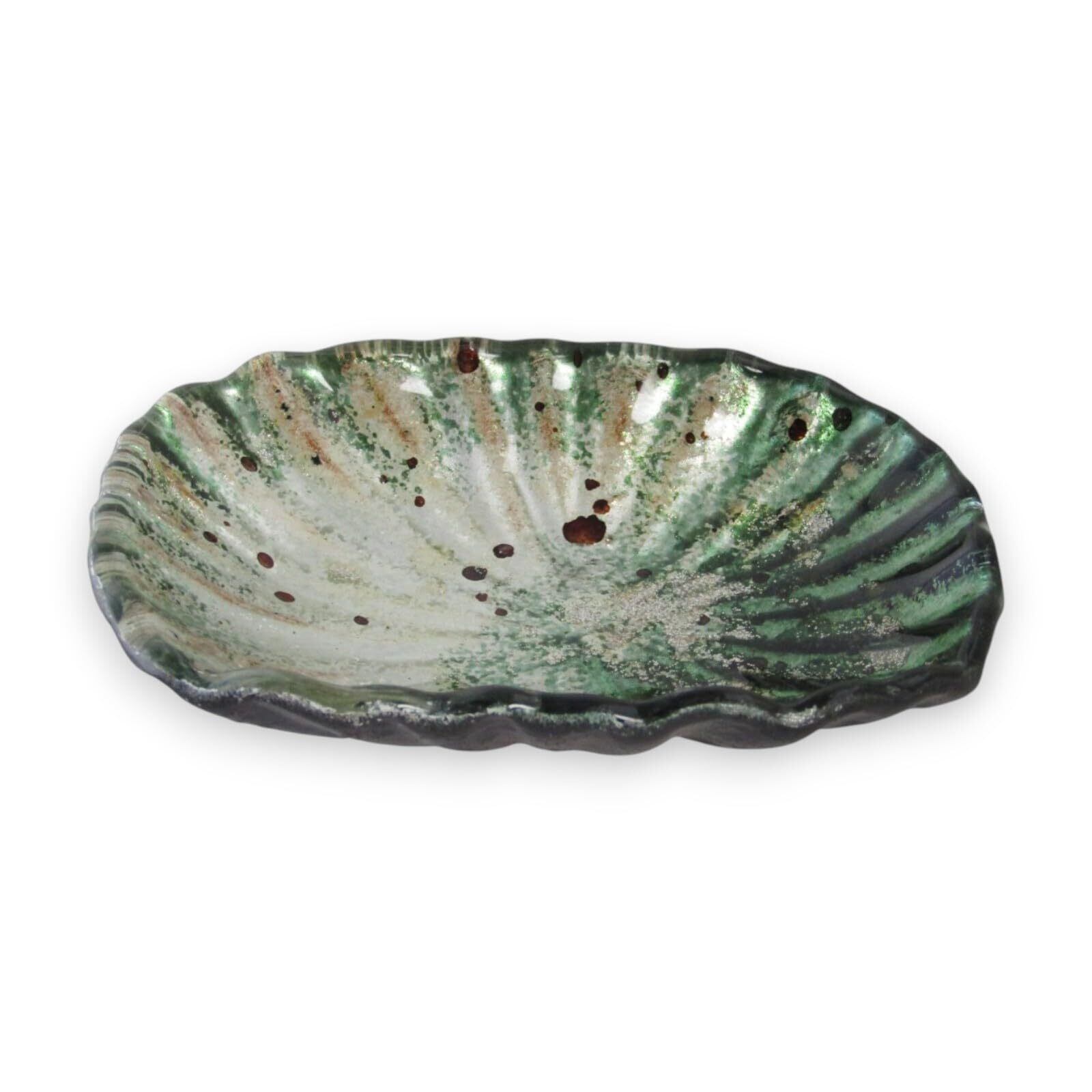 \【◆J-kitchens Nebula 皿 天皿 ガラス オーバル 小 グリーン ゴールド 12cm : 洗練されたデザインが魅力の華やかな天皿!】/
