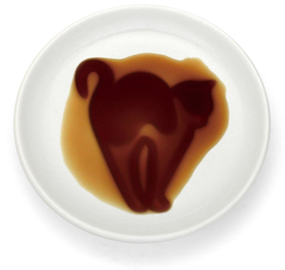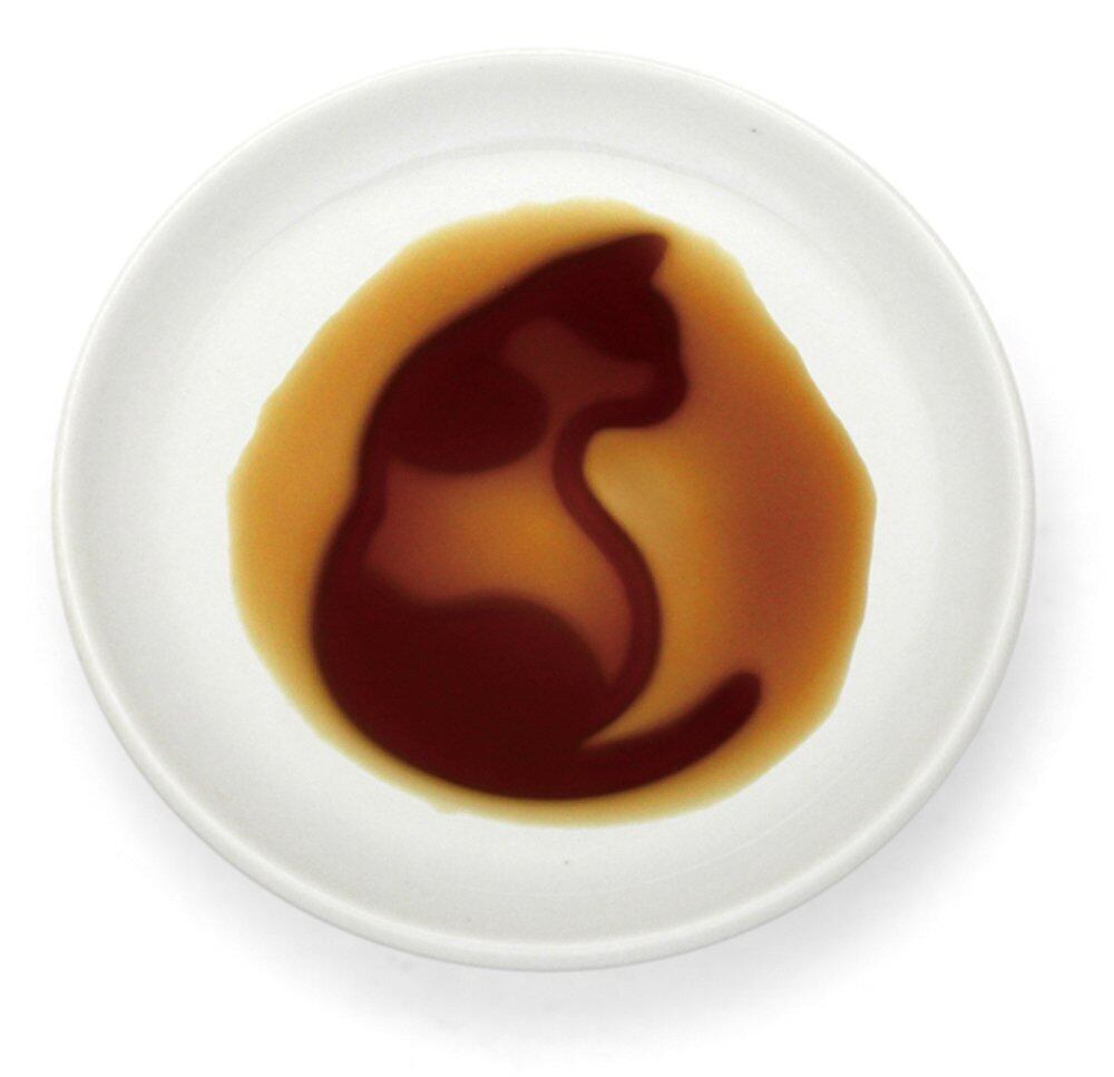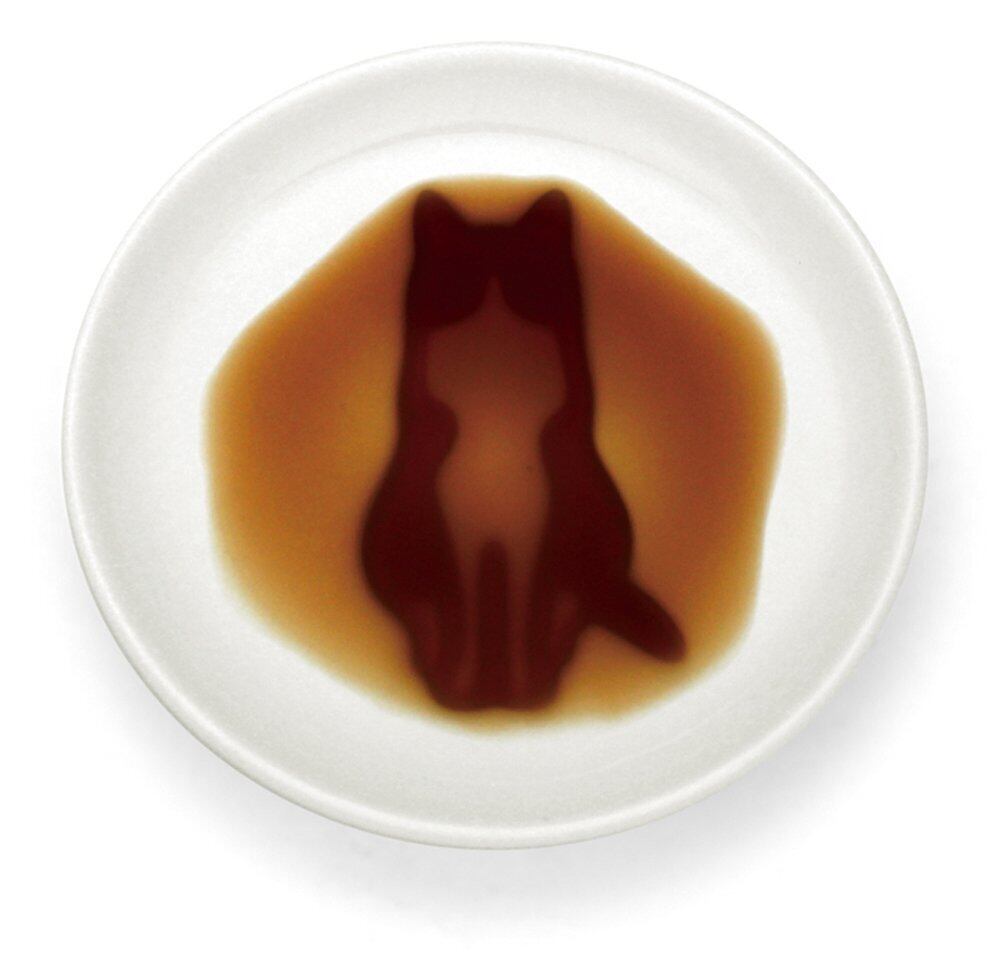 醤油を注ぐと、白黒ネコが現れる