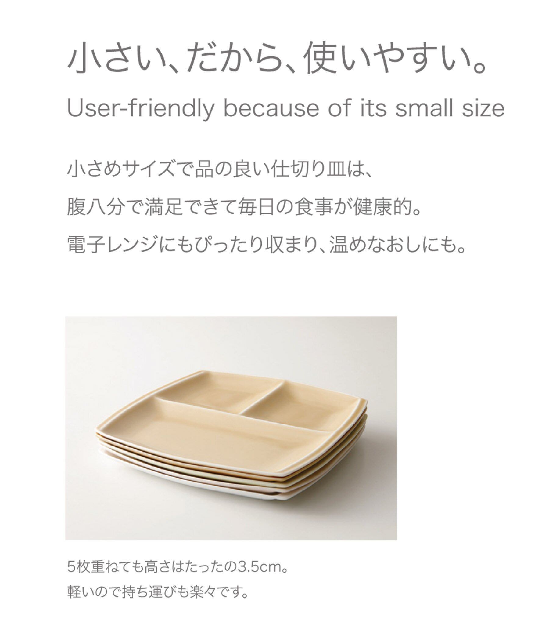 **3つの仕切りがあるため、異なるおかずを一皿で楽しむことができ、大変便利です!** お子様やゲストへの盛り付けにも最適で、食事の準備がスムーズに行えます。