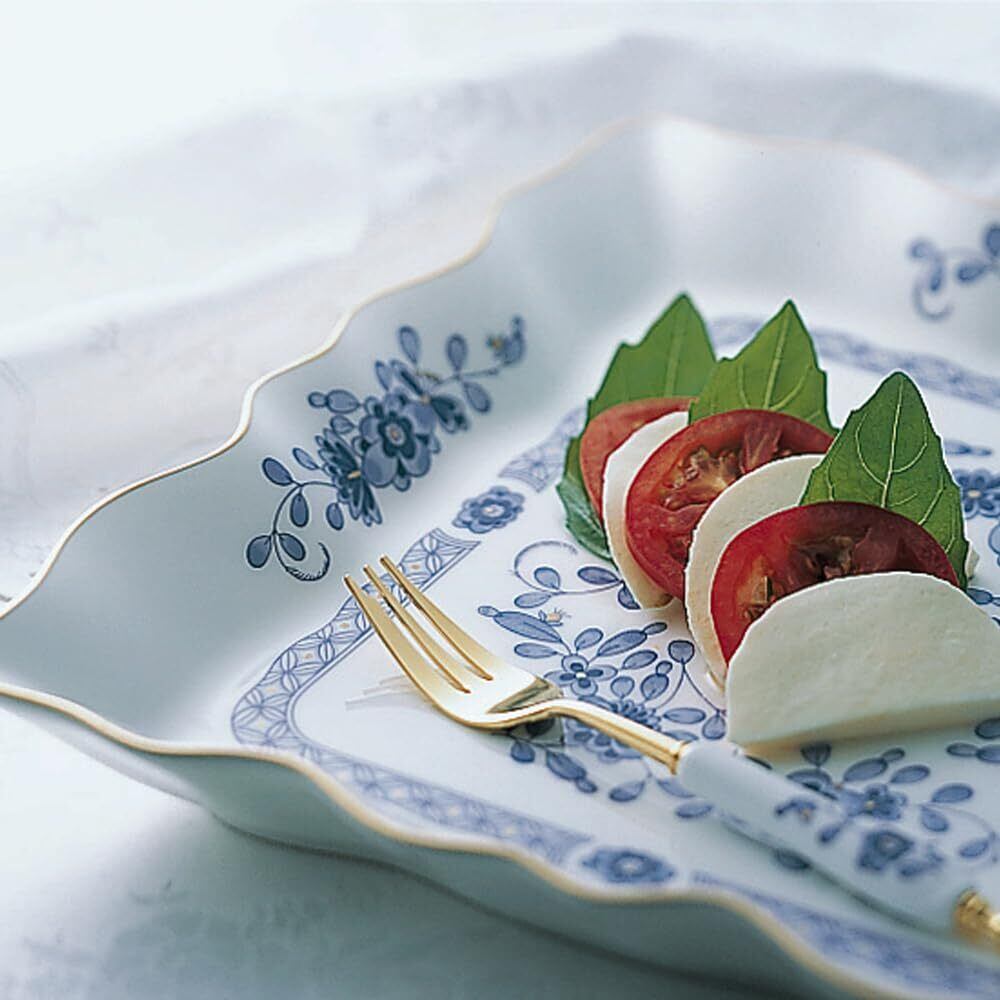 ●1972年の発売から30年以上愛されてきた、ミラノシリーズ。 気品と豪華さを兼ね備えたデザインで、優雅な食卓を演出します。 四角にフレアーの優しいラインをプラスしたお皿は、サンドウィッチやケーキ、お菓子などの盛りつけにおすすめ。 深さがあるので、少し汁気のあるお料理にも合います。