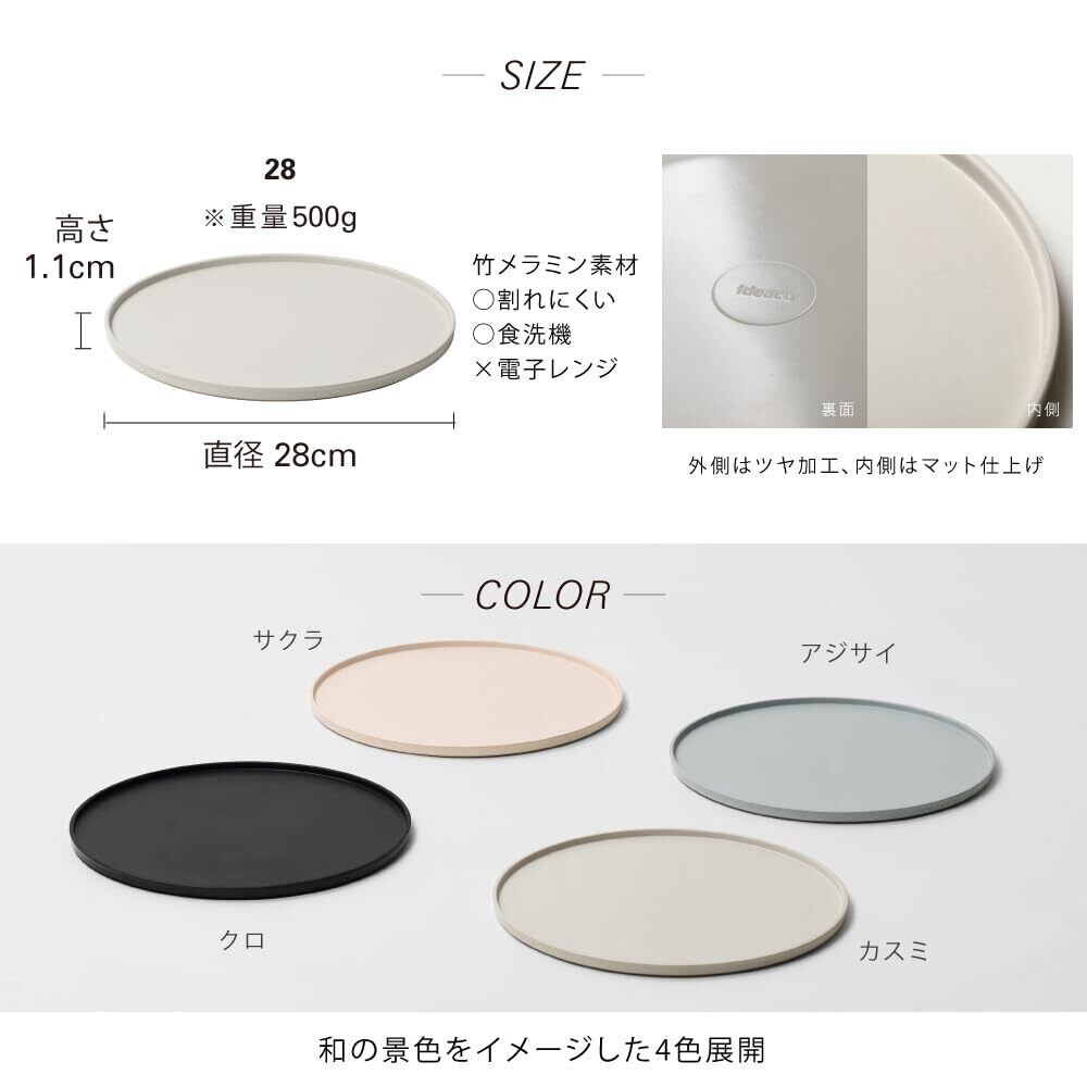 ideaco (イデアコ) 特大皿 平皿 プレート 直径 28 ✕ 高さ 1.1cm WAMONO 28 kuro (ワモノ 28 クロ/ブラック)
