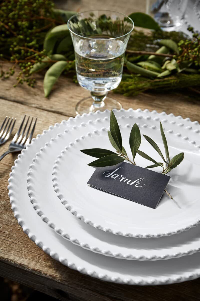 エッジにパールをあしらったようなデコラティブなデザインも、コスタ・ノバのストーンウェアならデイリー使いに。