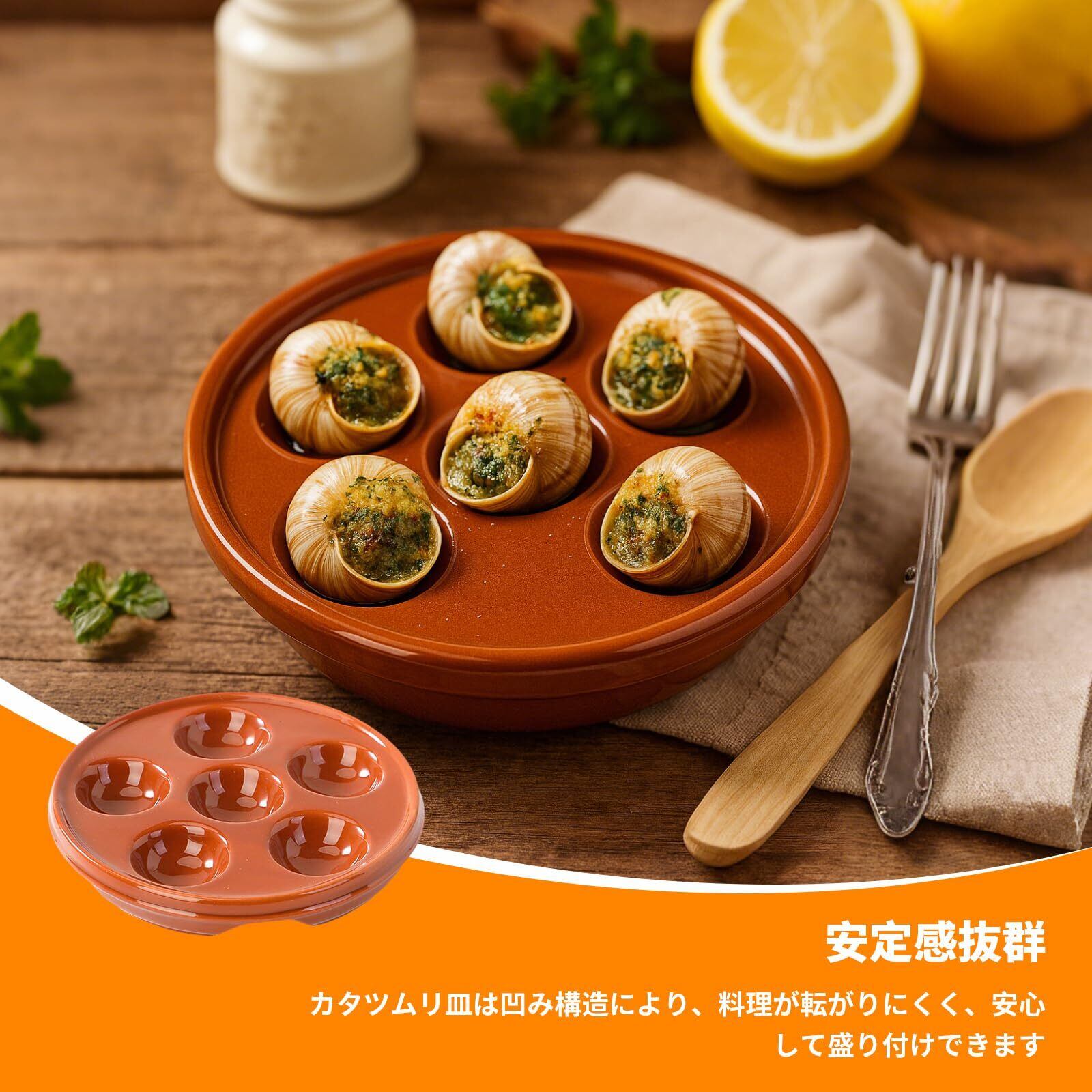 エスカルゴ&シーフード用ベーキングプレート 多用途たこ焼き&前菜皿 セラミック製ホルダーセット
