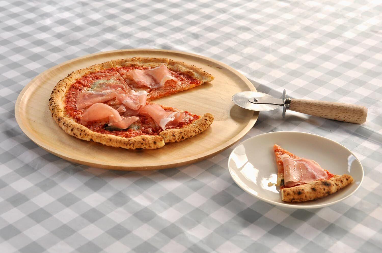 **料理をより楽しむためのピザカッターがセットになっており、お好きなサイズに簡単にカットできます!** 手軽に自宅で本格的なピザを楽しめる工夫が詰まっています。