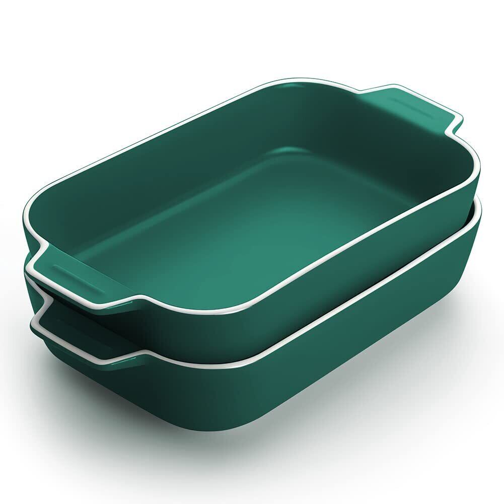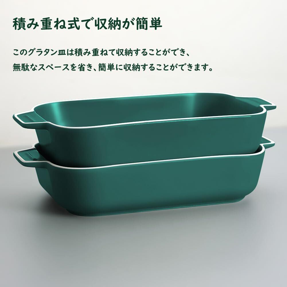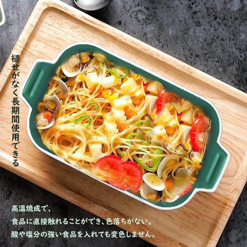 YFWOOD グラタン皿 2個セット 22×12×4.9cm 650ML×2 耐熱皿 大きめ スクエア 大皿 パン皿グリーン 電子レンジ 食洗機 オーブン対応 緑 サラダ皿 グラタン皿 一人用 家族用 パスタ皿 多機能皿