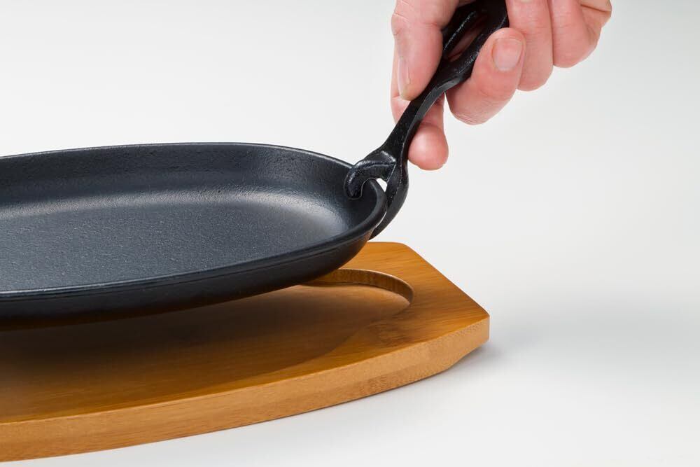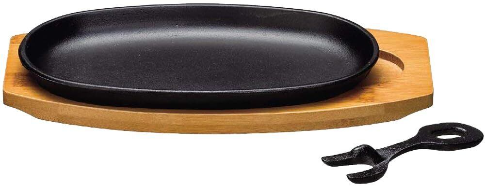 \【◆イシガキ ステーキ皿 小判 ハンドル 敷板付き 1枚組 鉄鋳物 幅28×奥行14.5×高さ3.5cm: 家庭で楽しむ熱々ステーキの決定版!】/