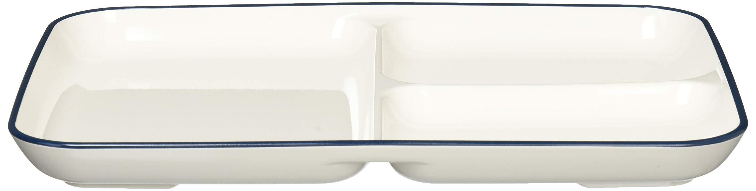 \【◆パール金属 渕彩 クリーンコート 角 仕切皿 L ホワイト&ネイビー 山中塗 日本製 電子レンジ対応 K-6335: おしゃれで機能的な食卓の必需品!】/