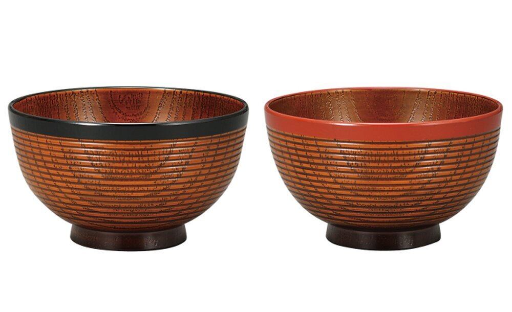 山中塗 レンジ 欅千筋杢目 汁椀 ペアセット 帯黒&帯朱 M16325